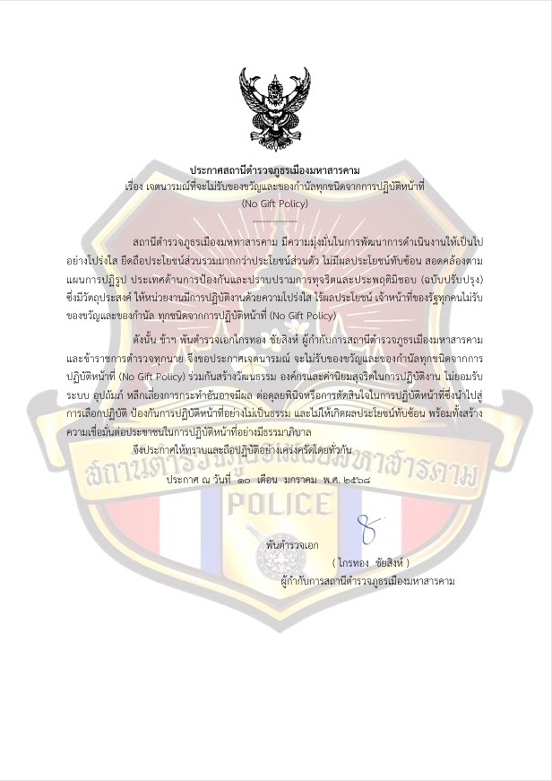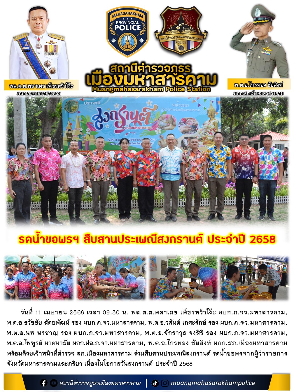 🚨สภ.เมืองมหาสารคาม/ภ.จว.มหาสารคาม🚨 🔸เมื่อวันที่ 11 เมษายน 2568 เวลา 09.30 น. 🔹พล.ต.ต.พลาเดช เพ็ชรหว้