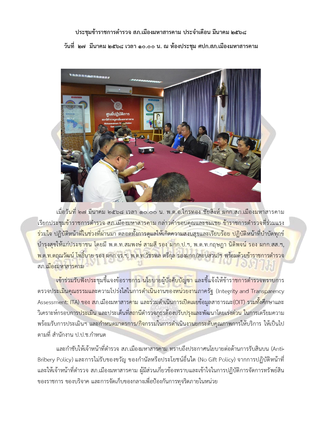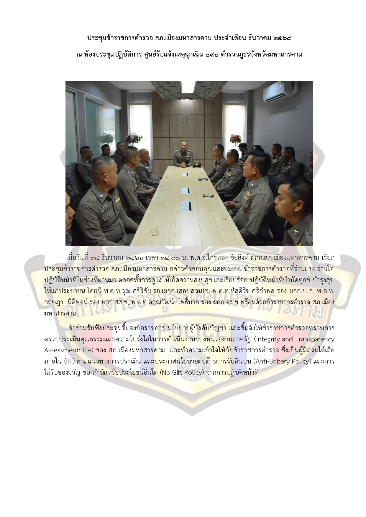 สภ.เมืองมหาสารคาม/ภ.จว.มหาสารคาม เมื่อวันที่ 26 มีนาคม 2568 เวลา 08.30 น. พ.ต.อ.ณัฐณวิทย์ สิทธาภิรมย