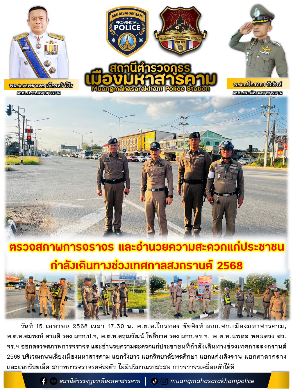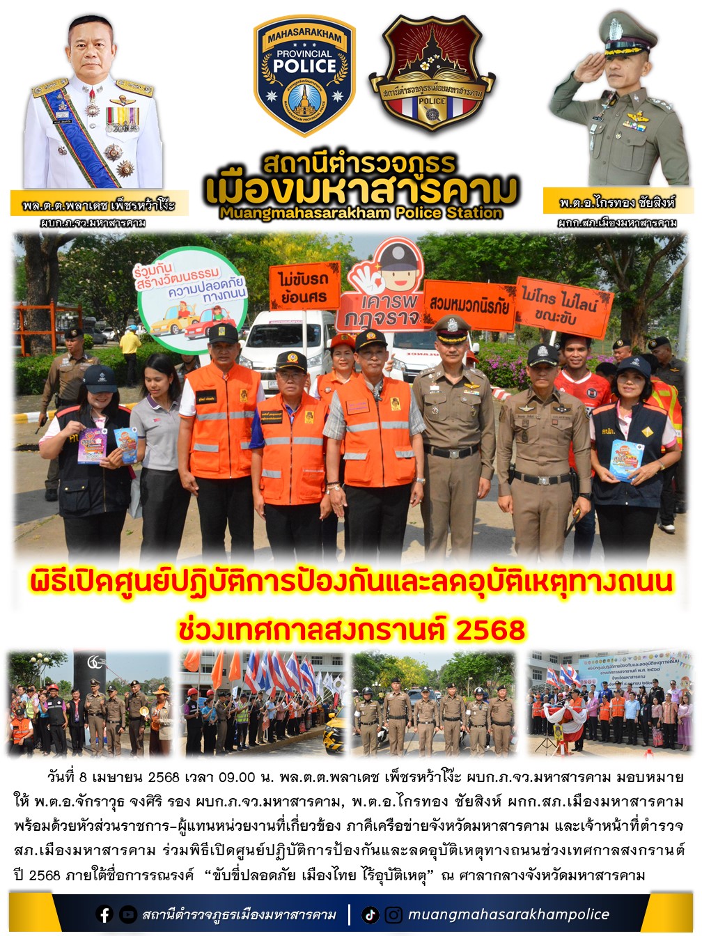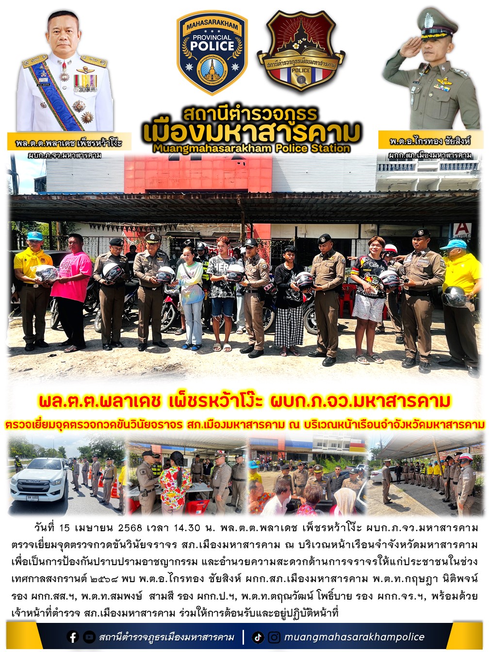 🚨สภ.เมืองมหาสารคาม/ภ.จว.มหาสารคาม🚨 🔸เมื่อวันที่ 15 เมษายน 2568 เวลา 14.30 น. 🔸พล.ต.ต.พลาเดช เพ็ชรหว้