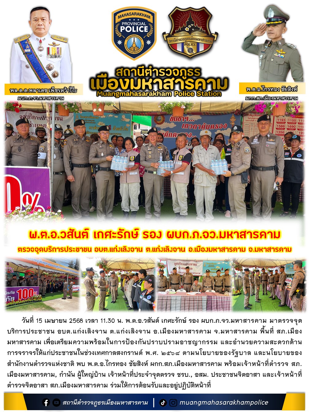 🚨สภ.เมืองมหาสารคาม/ภ.จว.มหาสารคาม🚨 🔸เมื่อวันที่ 15 เมษายน 2568 เวลา 11.30 น. 🔸พ.ต.อ.วสันต์ เกศะรักษ์