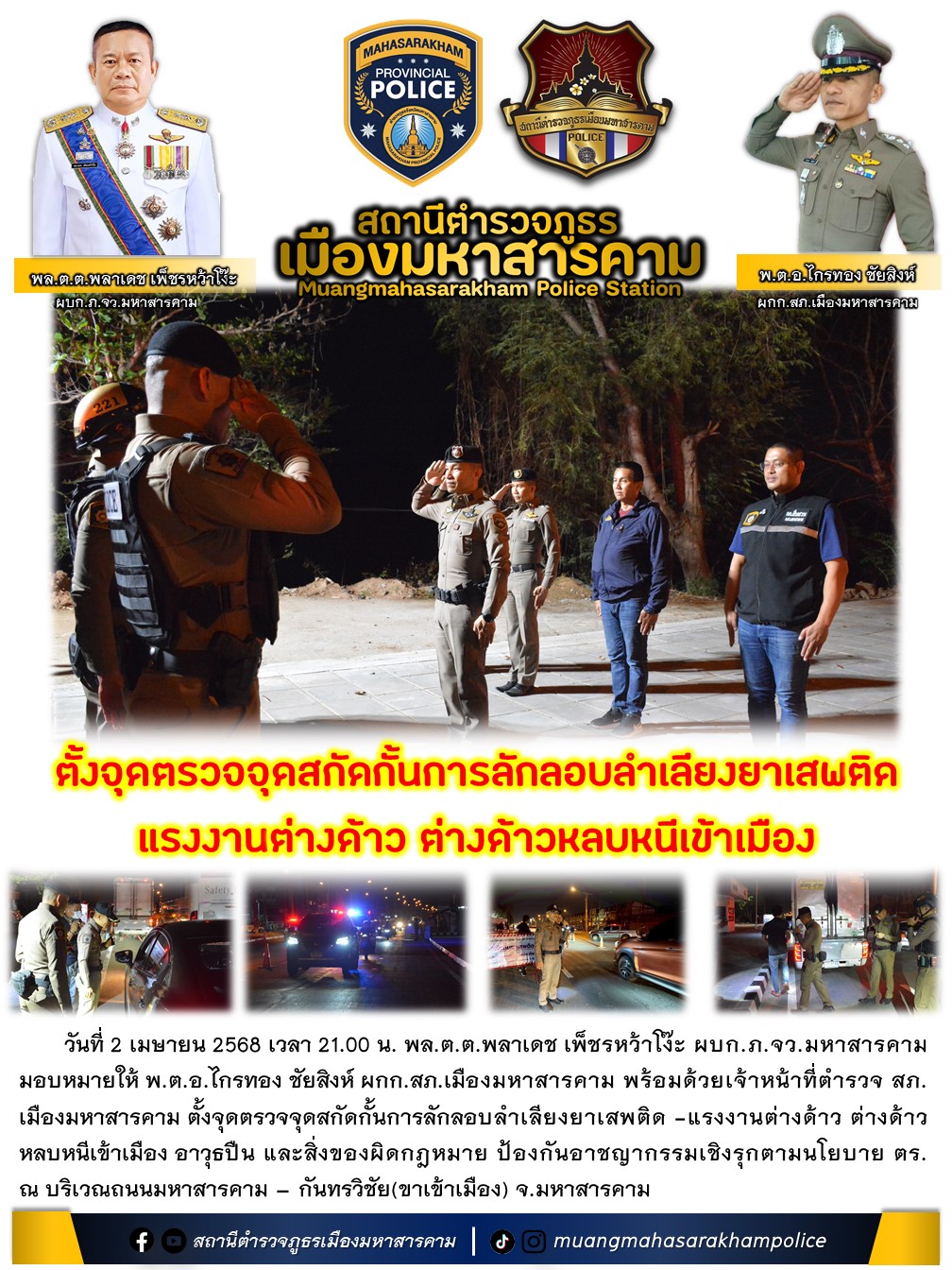 🚨สภ.เมืองมหาสารคาม/ภ.จว.มหาสารคาม🚨 🔸เมื่อวันที่ 2 เมษายน 2568 เวลา 21.00 น. 🔺โดยการอำนวยการ🔺 🔹พล.ต.ต