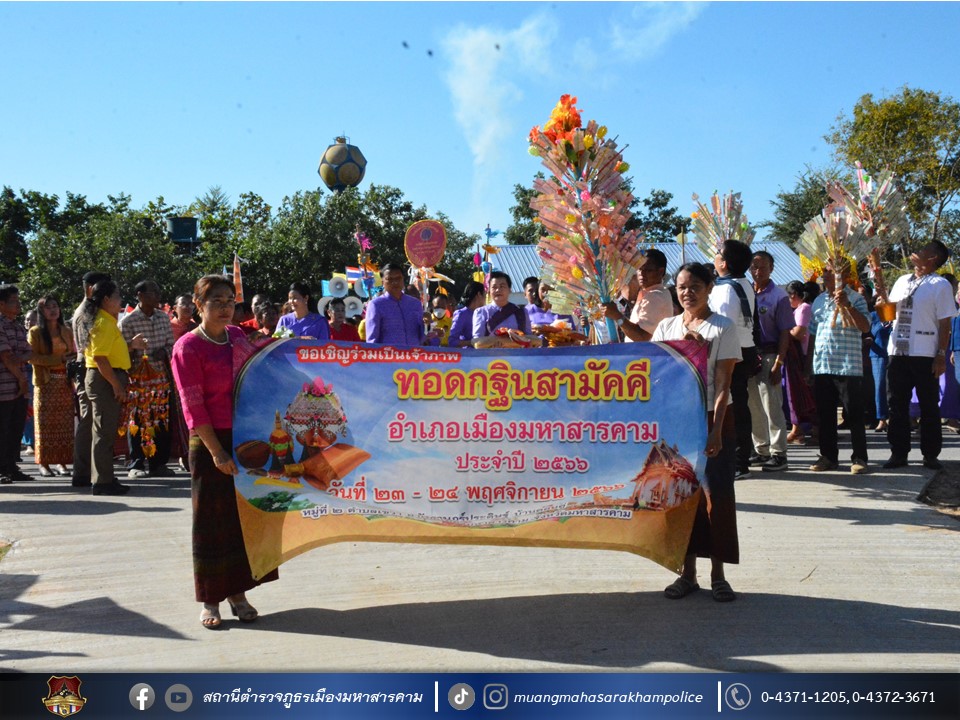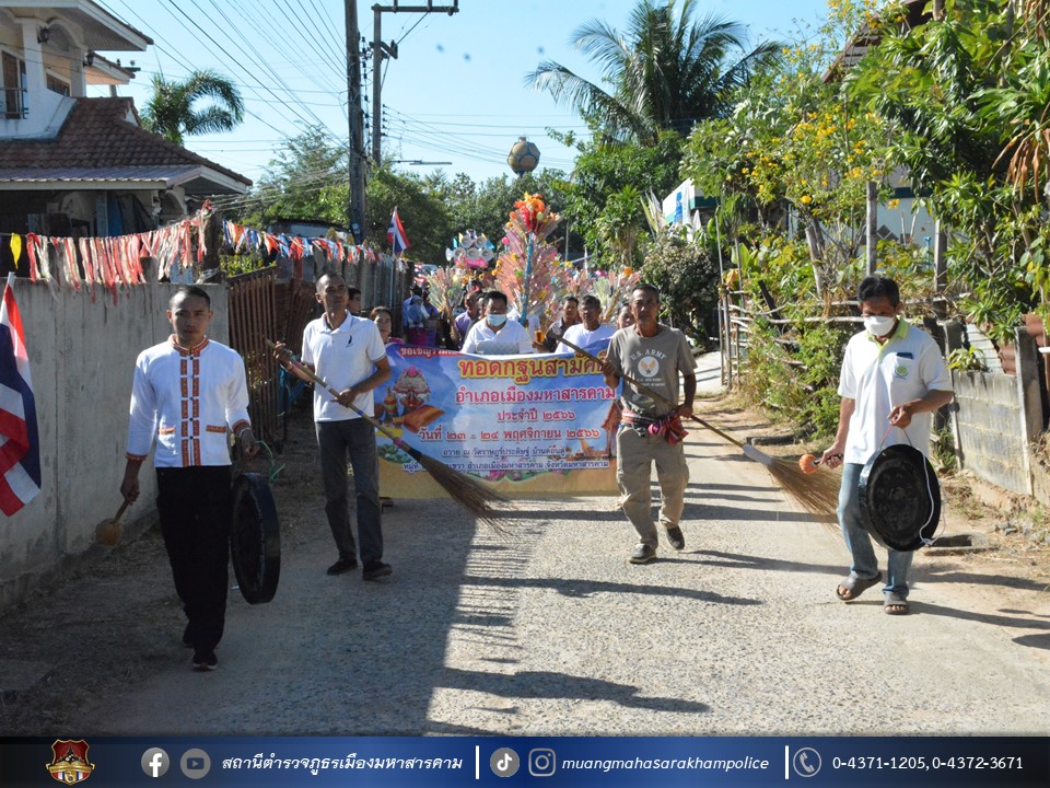 วันที่ 24 พฤศจิกายน 2566 เวลา 09.09 น. พ.ต.อ.ไกรทอง ชัยสิงห์ ผกก.สภ.เมืองมหาสารคาม พร้อมด้วยข้าราชการตำรวจชุดชุมชนมวลชนสัมพันธ์ สภ.เมืองมหาสารคาม