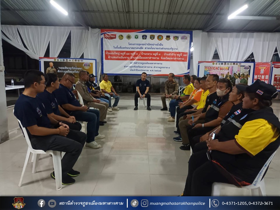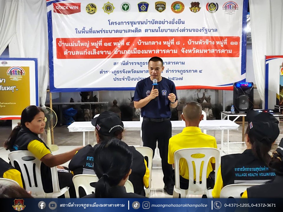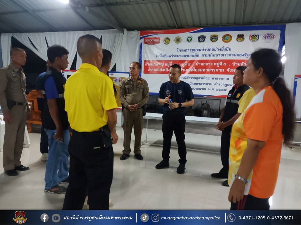 🔸พร้อมด้วยชุดปฏิบัติการชุมชนยั่งยืนฯ สภ.เมืองมหาสารคาม เจ้าหน้าที่ฝ่ายปกครอง ร่วมกับกำนัน ผู้ใหญ่บ้าน อาสาสมัครสาธารณสุขประจำหมู่บ้าน(อสม.), ภาคีเครือข่ายฯ บ้านเม่นใหญ่ ม.4,14 บ้านหัวช้าง ม.11 บ้านกลาง ม.8 ต.แก่งเลิงจาน อ.เมือง จ.มหาสารคาม