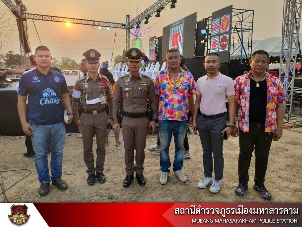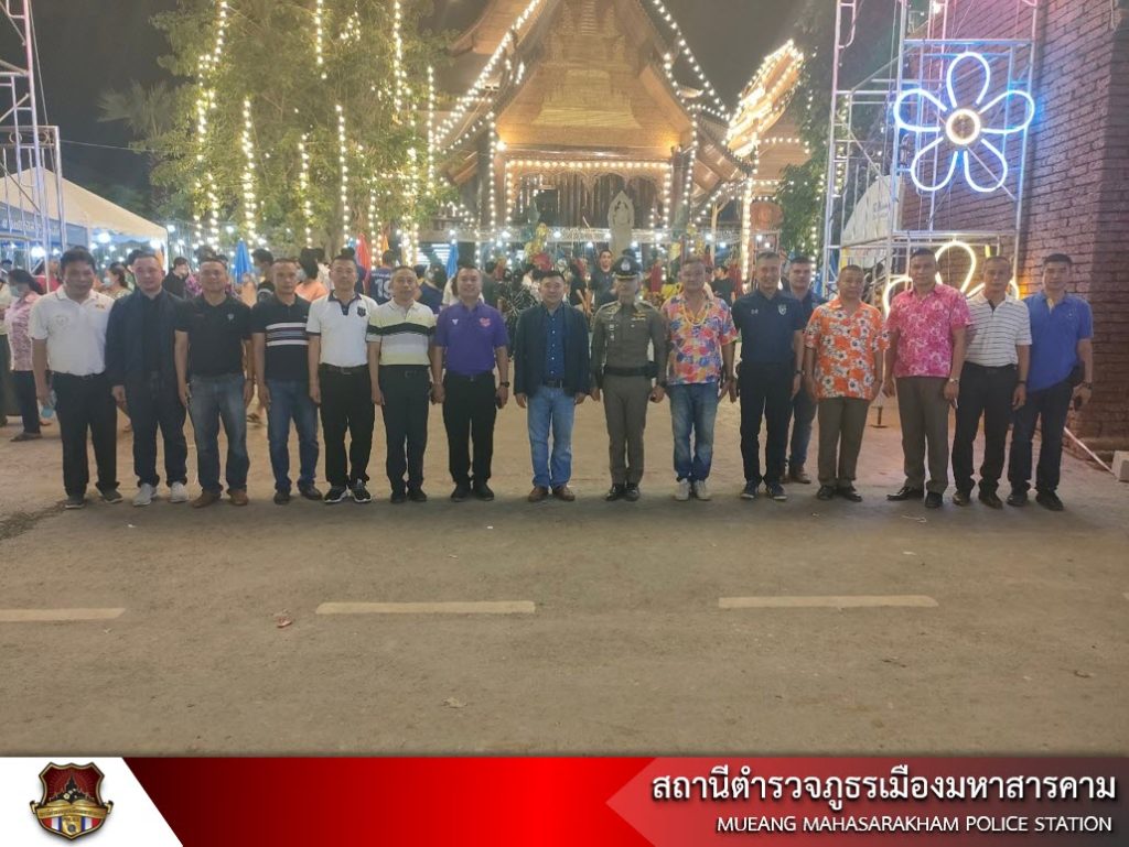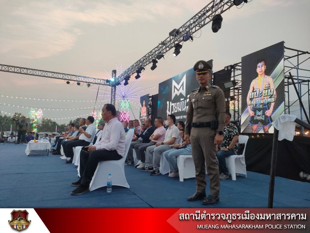 โดยมี พ.ต.อ.ไกรทอง ชัยสิงห์ ผกก.สภ.เมืองมหาสารคาม, พ.ต.ท.เทอดศักดิ์ พีระพันธุ์ รอง.ผกก.จร.สภ.เมืองมหาสารคาม, พ.ต.ท.กฤษฎา นิติพจน์ รอง ผกก.สส.สภ.เมืองมหาสารคาม ได้ตรวจความเรียบร้อยในบริเวณจัดกิจกรรม มวยมันส์ สนั่นเมืองมหาสารคาม “ฉลองอุโบสถไม้ตะเคียนทองวัดป่าวังน้ำเย็น“ พร้อมทั้งได้มอบหมายสั่งการให้ เจ้าหน้าที่ตำรวจ สภ.เมืองมหาสารคาม ออกปฏิบัติหน้าที่รักษาความปลอดภัย และอำนวยความสะดวกด้านการจราจร ให้แก่ประชาชนผู้มาร่วมงาน