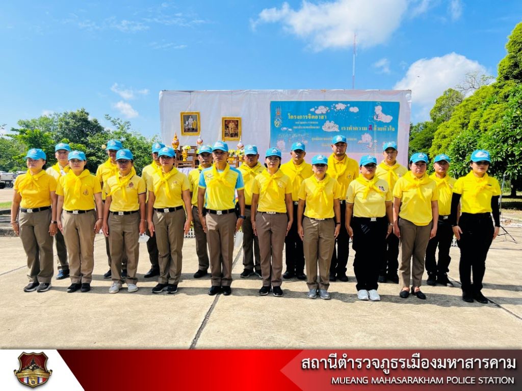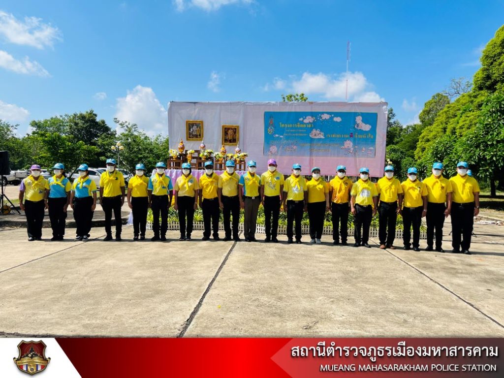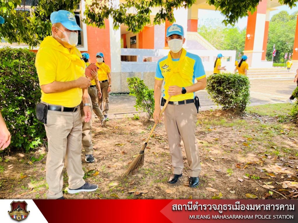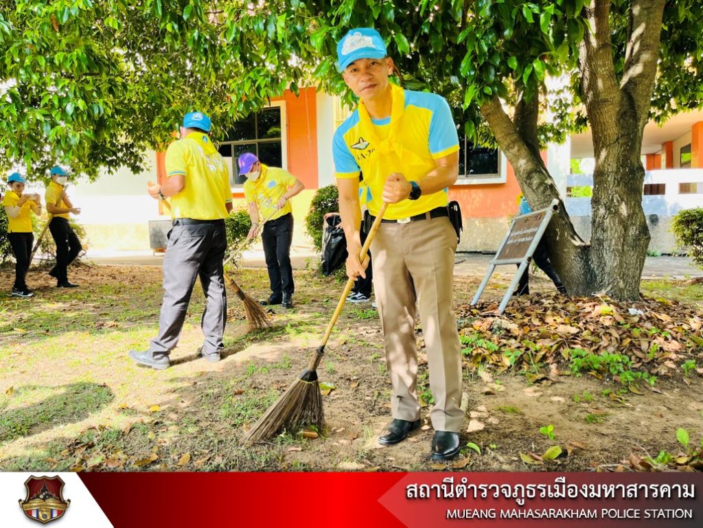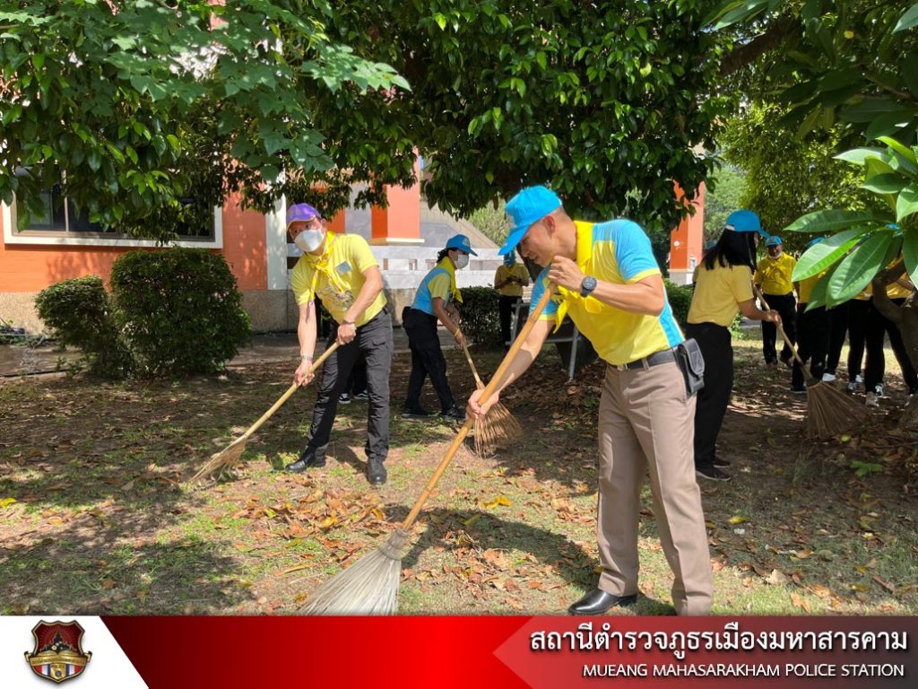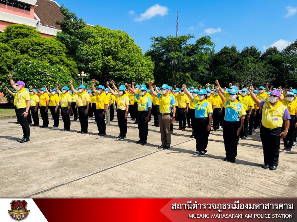 พ.ต.อ.ไกรทอง ชัยสิงห์ ผกก.สภ.เมืองมหาสารคาม, หัวหน้าส่วนราชการ/นักเรียน นักศึกษา/ประชาชนจิตอาสา พร้อมด้วยข้าราชการตำรวจ สภ.เมืองมหาสารคาม