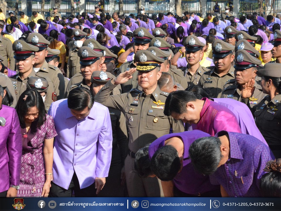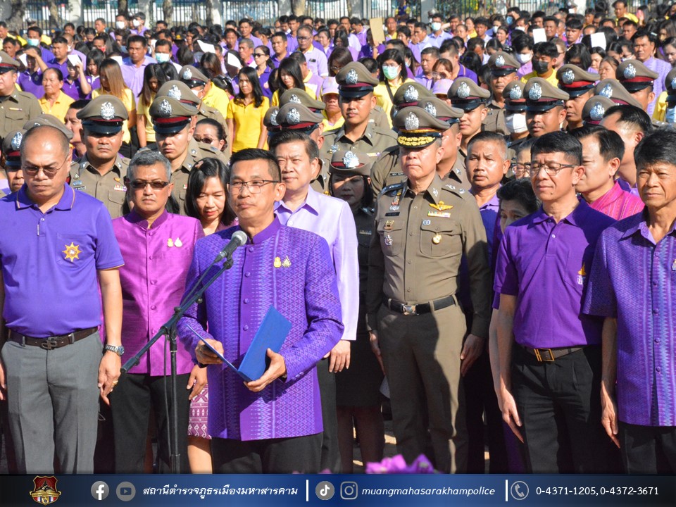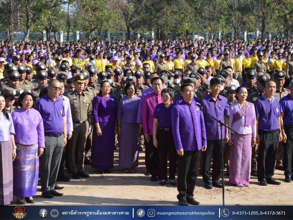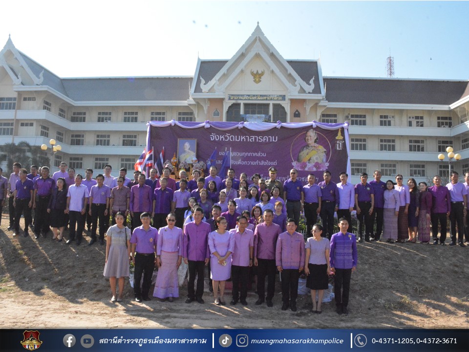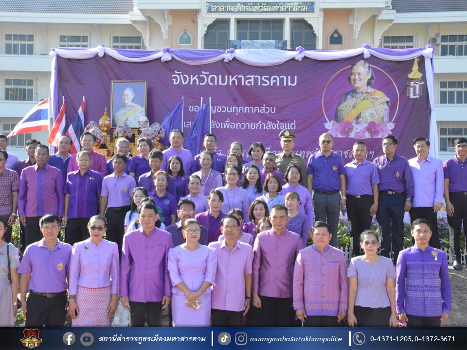 🔸พร้อมด้วยหัวหน้าสถานี ข้าราชการตำรวจในสังกัดตำรวจภูธรจังหวัดมหาสารคาม, หัวหน้าส่วนราชการ, ผู้แทนหน่วยงานเอกชน และพสกนิกรชาวจังหวัดมหาสารคามทุกหมู่เหล่า พร้อมใจกันใส่เสื้อสีม่วง ร่วมกิจกรรมถวายกำลังใจ สมเด็จพระกนิษฐาธิราชเจ้า กรมสมเด็จพระเทพรัตนราชสุดาฯ สยามบรมราชกุมารี