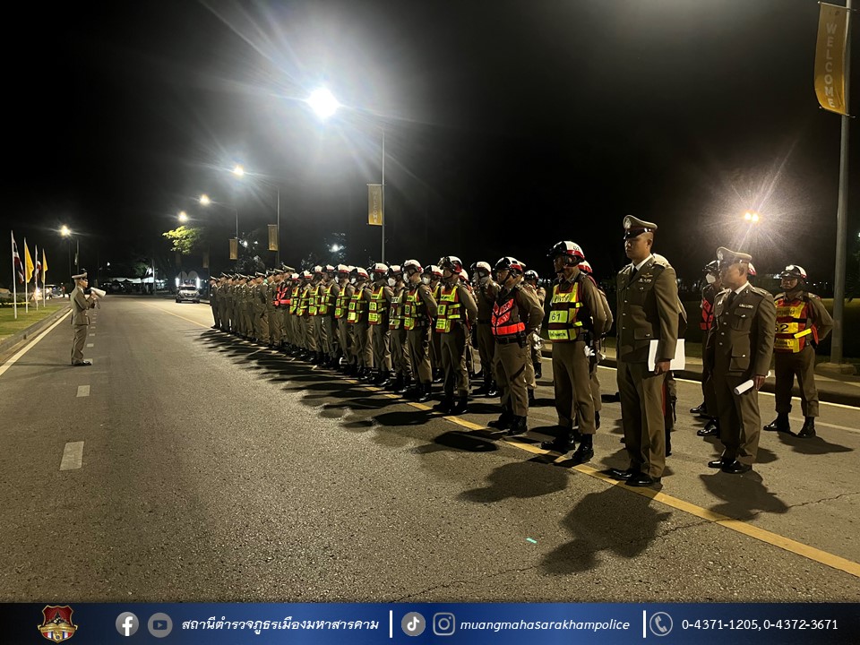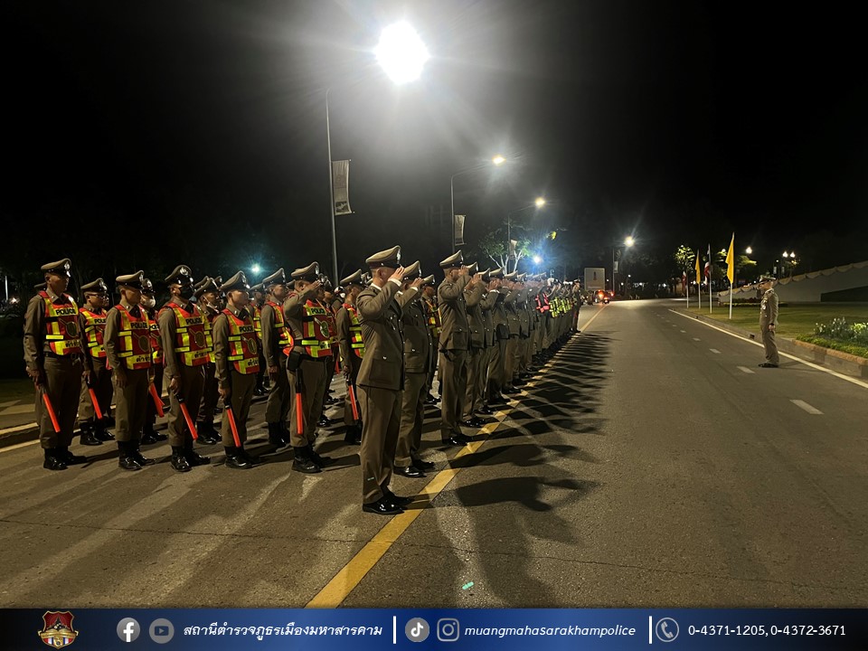🔸พร้อมด้วยข้าราชการตำรวจ สภ.เมืองมหาสารคาม ผู้ปฏิบัติหน้าที่รักษาความปลอดภัย และอำนวยความสะดวกด้านการจราจร ร่วมประชุมแถว