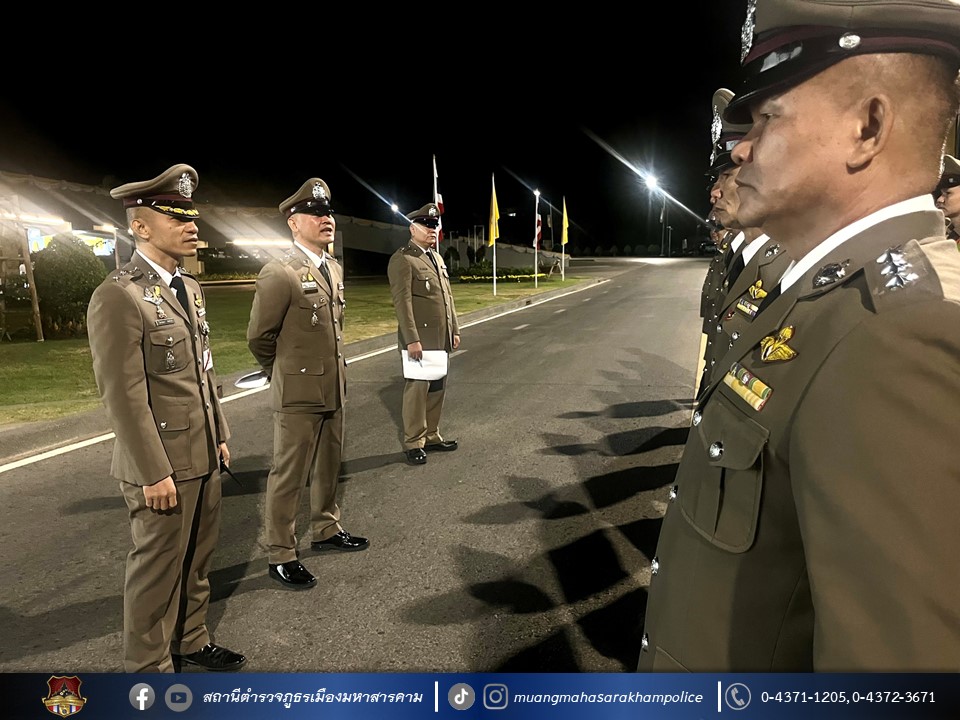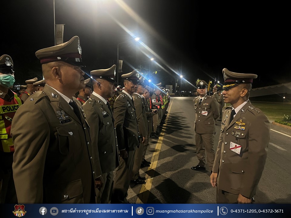 🔸เรียกตรวจแถวข้าราชการตำรวจ สภ.เมืองมหาสารคาม ผู้ปฏิบัติหน้าที่รักษาความปลอดภัย และอำนวยความสะดวกด้านการจราจรภายในบริเวณงานพิธีพระราชทานปริญญาบีตรมหาวิทยาลัยมหาสารคาม ประจำปี 2565 ณ อาคารเฉลิมพระเกียรติฯ มหาวิทยาลัยมหาสารคาม โดยมี