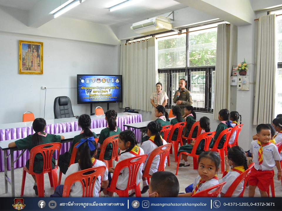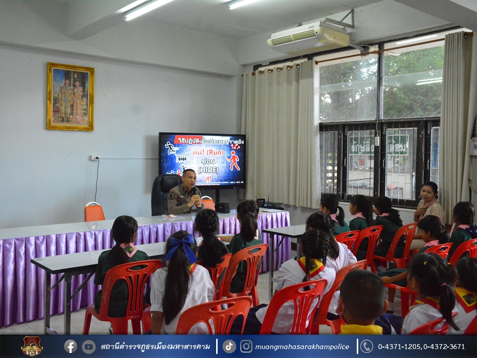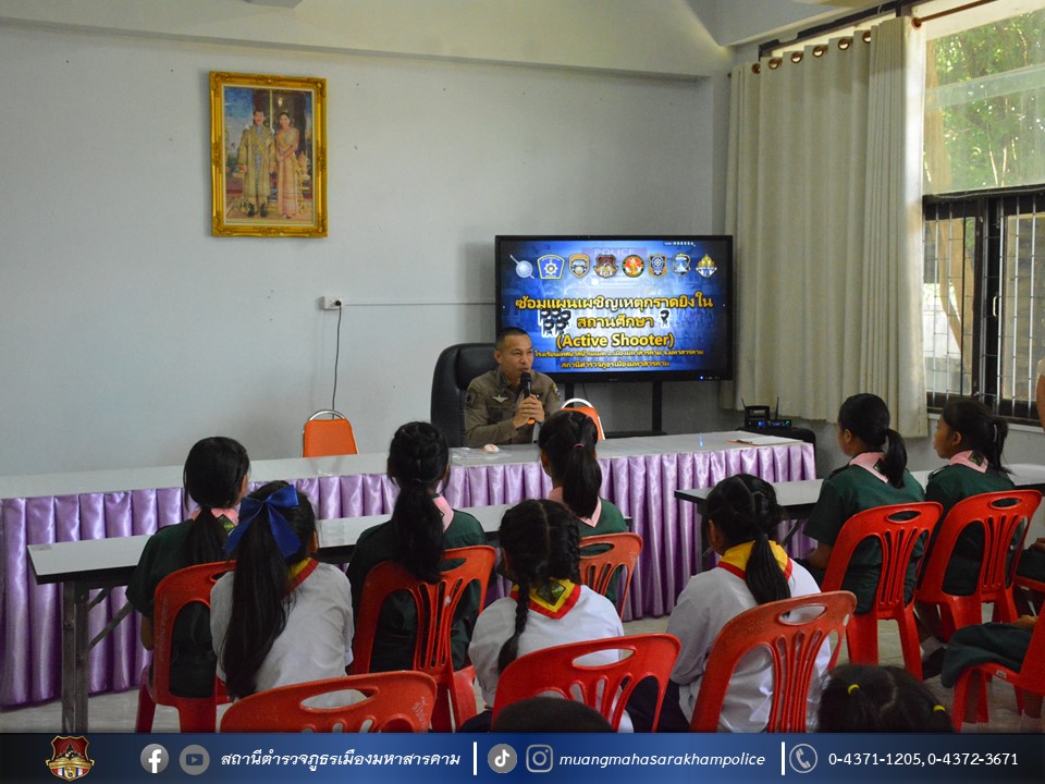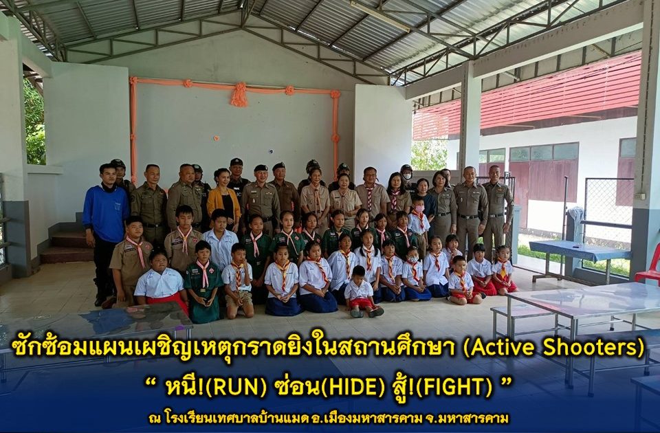 🔸พ.ต.อ.ไกรทอง ชัยสิงห์ ผกก.สภ.เมืองมหาสารคาม ได้บรรยายให้ความรู้แก่ผู้บริหาร คณะครู บุคลากรทางการศึกษา นักเรียนโรงเรียนเทศบาลบ้านแมด ในหัวข้อ “เตรียมความพร้อมรับมือเหตุกราดยิง (Active Shooters) หนี ซ่อน สู้” และได้ร่วมบริหารเหตุการณ์และสังเกตการณ์ ซักซ้อมแผนเผชิญเหตุกราดยิงในสถานศึกษา (Active Shooters) ณ โรงเรียนเทศบาลบ้านแมด อ.เมืองมหาสารคาม จ.มหาสารคาม