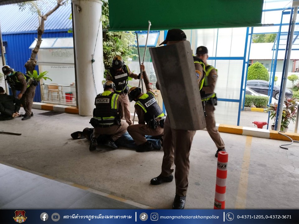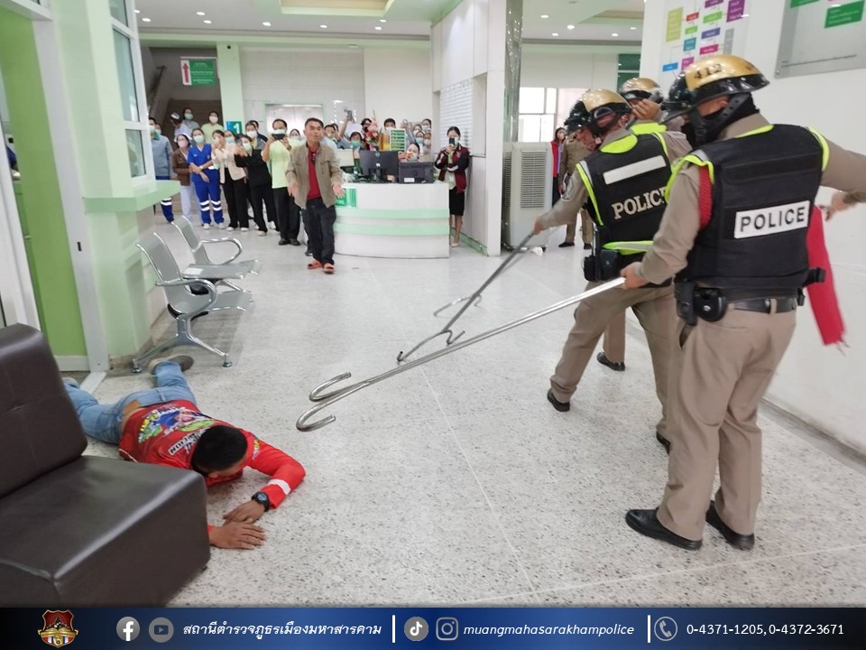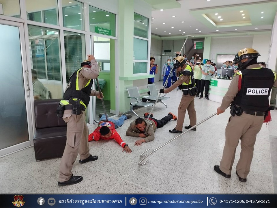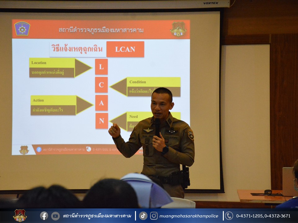🔸พร้อมด้วยข้าราชการตำรวจ สภ.เมืองมหาสารคาม ร่วมบรรยาย กฎแห่งความปลอดภัยในการเผชิญเหตุ และหลักการแจ้งเหตุฉุกเฉิน (LCAN) ตามการซักซ้อมแผนเผชิญเหตุทะเลาะวิวาทภายในโรงพยาบาล ณ โรงพยาบาลมหาสารคามอินเตอร์เนชั่นแนล จังหวัดมหาสารคาม