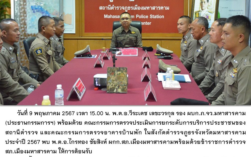 🔹พ.ต.อ.วีระเดช เลขะวรกุล รอง ผบก.ภ.จว.มหาสารคาม (ประธานกรรมการฯ) พร้อมด้วย คณะกรรมการตรวจประเมินการยกระดับการบริการประชาชนของสถานีตำรวจ และคณะกรรมการตรวจบ้านพัก ในสังกัดตำรวจภูธรจังหวัดมหาสารคาม ประจำปี 2567
