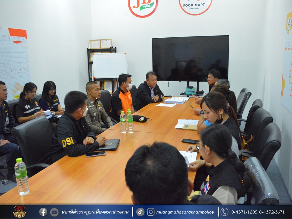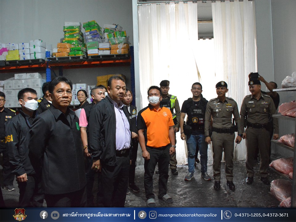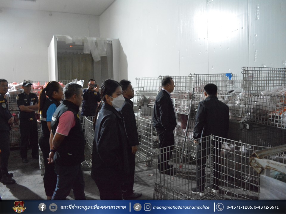วันที่ 24 พฤศจิกายน 2566 เวลา 11.00 น. โดยการอำนวยการของ พล.ต.ต.พรชัย ชลอเดช ผบก.ภ.จว.มหาสารคาม มอบหมายให้ พ.ต.อ.ไกรทอง ชัยสิงห์ ผกก.สภ.เมืองมหาสารคาม, พ.ต.ท.หัสดีวิช ศรีกำพล รอง ผกก.ป.สภ.เมืองมหาสารคาม พร้อมด้วยเจ้าหน้าที่ตำรวจ สภ.เมืองมหาสารคาม บูรณาการร่วมกับ บก.สส.ภ.4 โดยการอำนวยการของ พ.ต.อ.อรรถพร สุริยเลิศ รอง ผบก.ภ.จว.มุกดาหาร ปรก.บก.สส.ภ.4 มอบหมายให้ พ.ต.ท.ฐิติกร มัชมณฑล สว.กก.สืบสวน 2 และเจ้าหน้าที่ตำรวจ บก.สส.ภ.4, นายวิญญู มธุโรรส ผู้อำนวยการศูนย์ปฏิบัติการคดีพิเศษเขตพื้นที่ 4 (DSI) นายวรกร อินทแพทย์ ปศุสัตว์จังหวัดมหาสารคาม, นายฉลองรัตน์ จันทร์ส่งแก้ว หัวหน้าด่านกักกันสัตว์จังหวัดมหาสารคาม เจ้าหน้าที่ศูนย์ปฏิบัติการคดีพิเศษเขตพื้นที่ 4, เจ้าหน้าที่ปศุสัตว์จังหวัดมหาสารคาม, เจ้าหน้าที่ด่านกักกันสัตว์จังหวัดมหาสารคาม ตรวจสถานประกอบการที่ใช้เก็บชิ้นส่วนสัตว์ และสินค้าการเกษตร บริษัท เจบีฟุดส์ จำกัด ที่ตั้งเลขที่ 76/10 ถ.นครสวรรค์ ต.ตลาด อ.เมืองมหาสารคาม จ.มหาสารคาม ผลการตรวจสอบ มีใบอนุญาตการประกอบกิจการ, มีใบอนุญาตเคลื่อนย้ายซากสัตว์ และไม่พบการกระทำความผิดแต่อย่างใด
