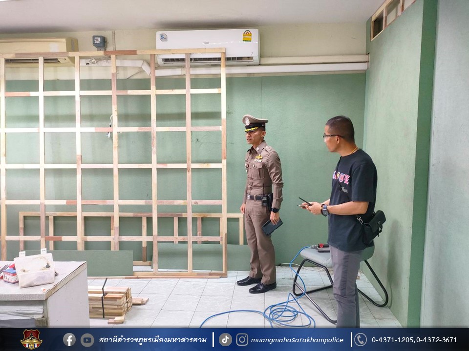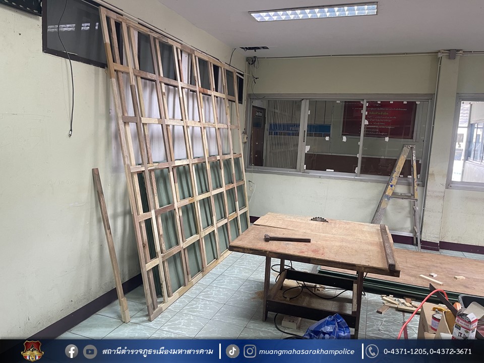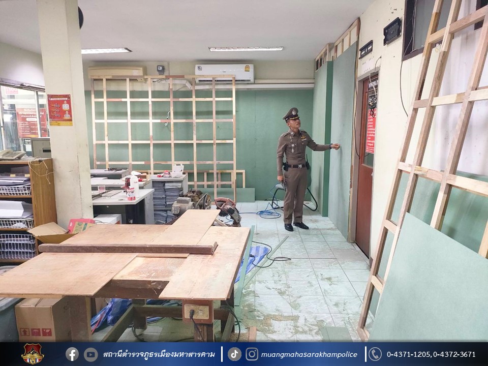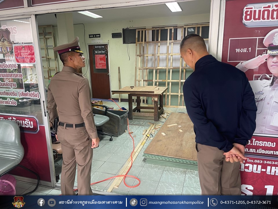 ตรวจสอบ ติดตามการดำเนินการปรับปรุงอาคารที่ทำการ สภ.เมืองมหาสารคาม บริเวณชั้น 1 ห้อง ONE STOP SERVICE เพื่อให้มีภาพลักษณ์รูปแบบใหม่และความทันสมัย (ทดแทนของเดิมที่มีสภาพเก่า) และสร้างความสะดวก สบาย รวดเร็ว แก่ประชาชนที่มาใช้บริการ ตามนโยบายสำนักงานตำรวจแห่งชาติในการยกระดับการให้บริการประชาชน
