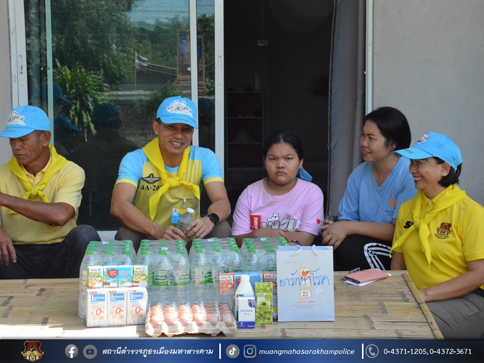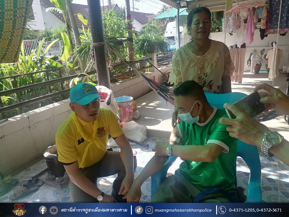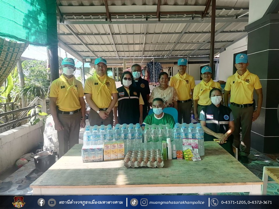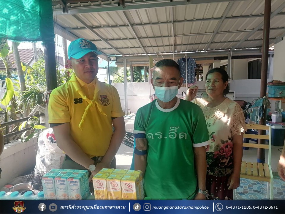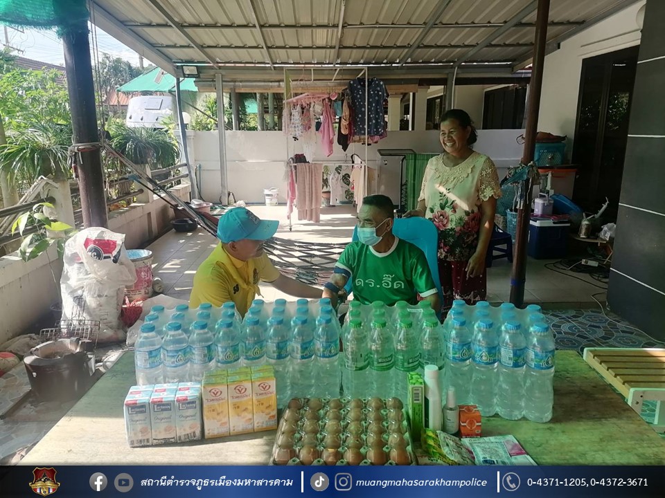 พร้อมด้วยข้าราชการตำรวจจิตอาสา สภ.เมืองมหาสารคาม ออกเยี่ยม ติดตามอาการผู้ป่วยในพระบรมราชานุเคราะห์ จำนวน 3 ราย พร้อมมอบสิ่งของอุปโภค บริโภค เพื่อเป็นขวัญกำลังใจ ให้กับผู้ป่วยในพระบรมราชานุเคราะห์ในเขตพื้นที่ สภ.เมืองมหาสารคาม