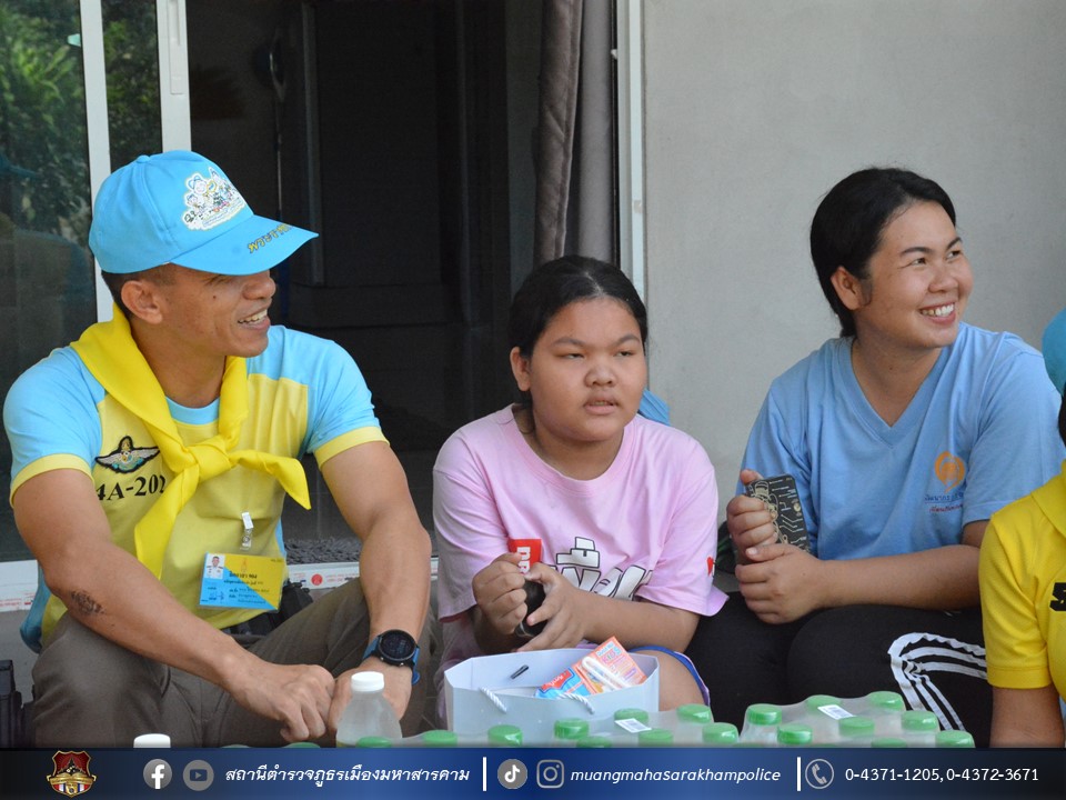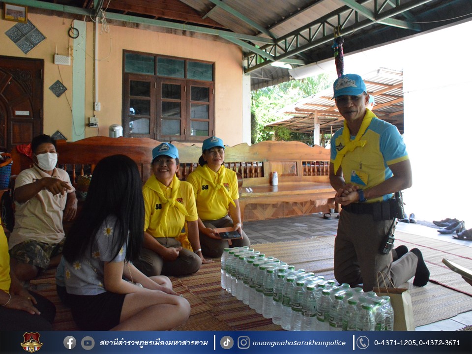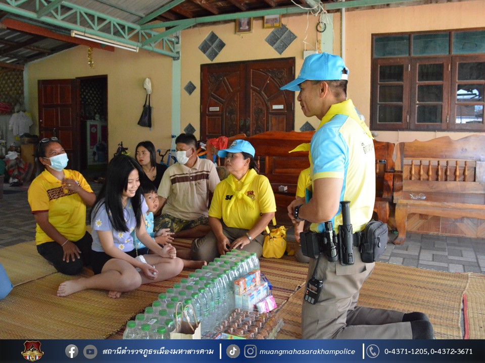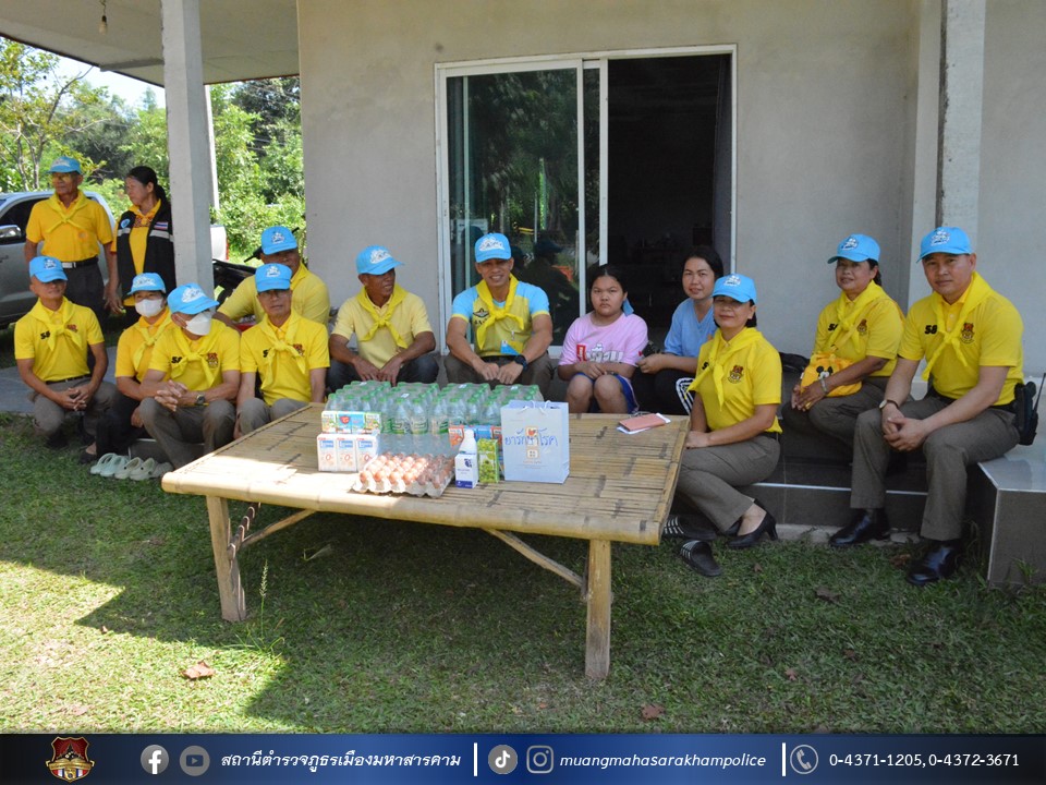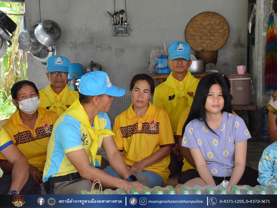 พร้อมด้วยข้าราชการตำรวจจิตอาสา สภ.เมืองมหาสารคาม ออกเยี่ยม ติดตามอาการผู้ป่วยในพระบรมราชานุเคราะห์ จำนวน 3 ราย พร้อมมอบสิ่งของอุปโภค บริโภค เพื่อเป็นขวัญกำลังใจ ให้กับผู้ป่วยในพระบรมราชานุเคราะห์ในเขตพื้นที่ สภ.เมืองมหาสารคาม