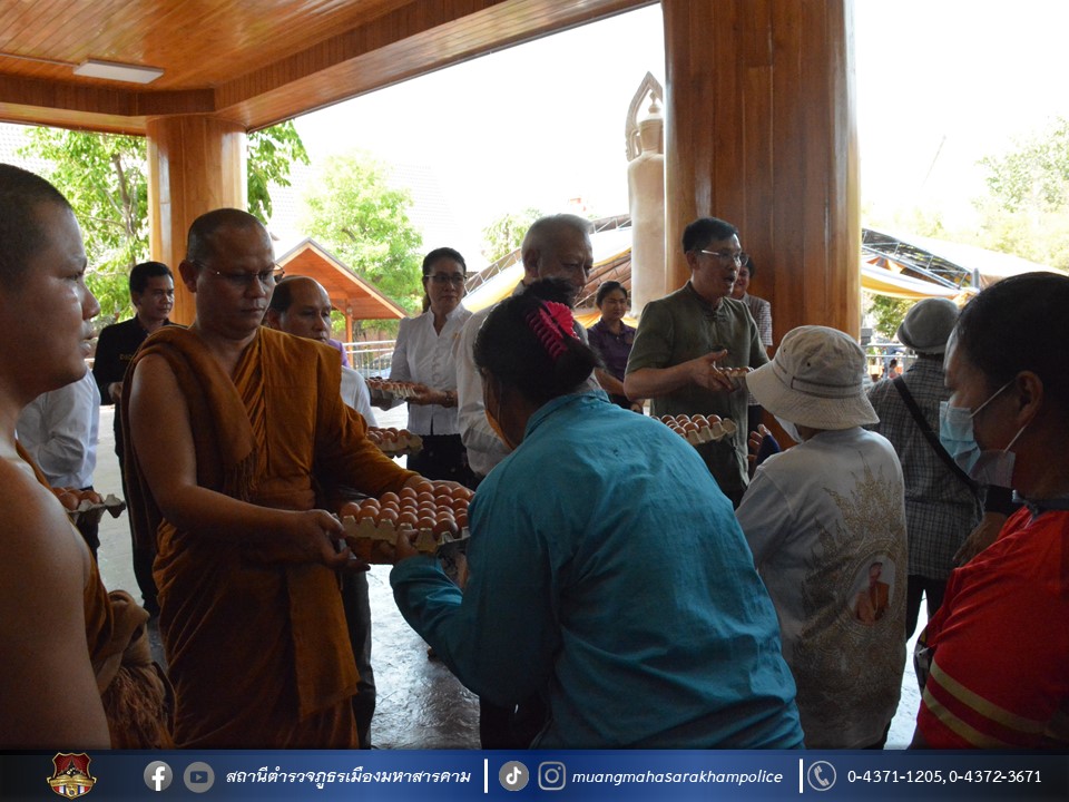 🔸จากนั้น พระครูปลัดอาจริยวัฒน์, นายพิพัฒน์ รัชกิจประการ รัฐมนตรีว่าการกระทรวงแรงงาน และนายวิบูรณ์ แววบัณฑิต ผู้ว่าราชการจังหวัดมหาสารคาม ร่วมด้วยเจ้าหน้าผู้เกี่ยวข้อง และเจ้าหน้าที่ตำรวจ สภ.เมืองมหาสารคาม ร่วมกันแจกทานบารมี(ไข่ไก่) แก่พุทธศาสนิกชนที่มาทำบุญ ณ วัดพุทธวนาราม(วัดป่าวังน้ำเย็น) อ.เมืองมหาสารคาม จ.มหาสารคาม