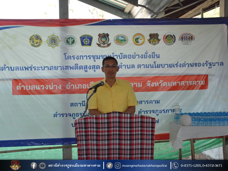 🔹นายวิบูรณ์ แววบัณฑิต ผู้ว่าราชการจังหวัดมหาสารคาม เป็นประธานตรวจเยี่ยม ติดตามการดำเนิน “โครงการชุมชนบำบัดอย่างยั่งยืนในตำบลแพร่ระบาดยาเสพติดสูงสุด 100 ตำบล ตามนโยบายเร่งด่วนของรัฐบาล” ของสถานีตำรวจภูธรเมืองมหาสารคาม พื้นที่ตำบลแวงน่าง อำเภอเมืองมหาสารคาม จังหวัดมหาสารคาม ประจำปี 2567 โดยมี