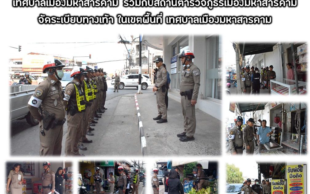 🔸พร้อมด้วยเจ้าหน้าที่ตำรวจ สภ.เมืองมหาสารคาม ร่วมกับ เจ้าหน้าที่เทศกิจเทศบาลเมืองมหาสารคาม ออกประชาสัมพันธ์จัดระเบียบการวางของบนทางเท้า และวางสิ่งของกีดขวางพื้นผิวจราจร ในเขตพื้นที่ เทศบาลเมืองมหาสารคาม