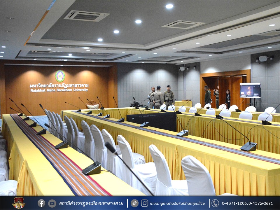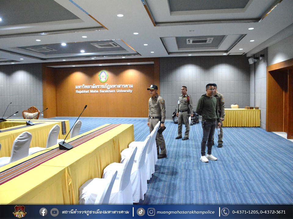จากนั้นได้ร่วมกับ เจ้าหน้าที่มหาวิทยาลัยราชภัฎมหาสารคาม ตรวจความเรียบร้อยเส้นทาง การรักษาความปลอดภัย การจัดวางกำลัง และการตั้งศูนย์ ศปก.ส่วนหน้า ภายในเขตพื้นที่ มหาวิทยาลัยราชภัฎมหาสารคาม