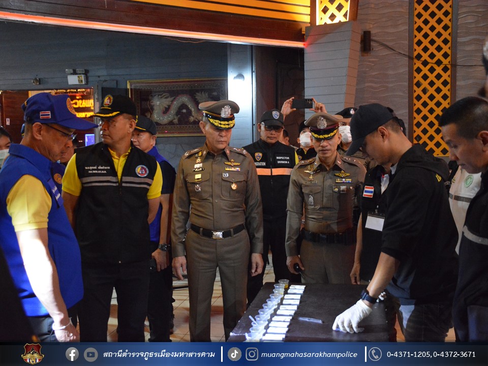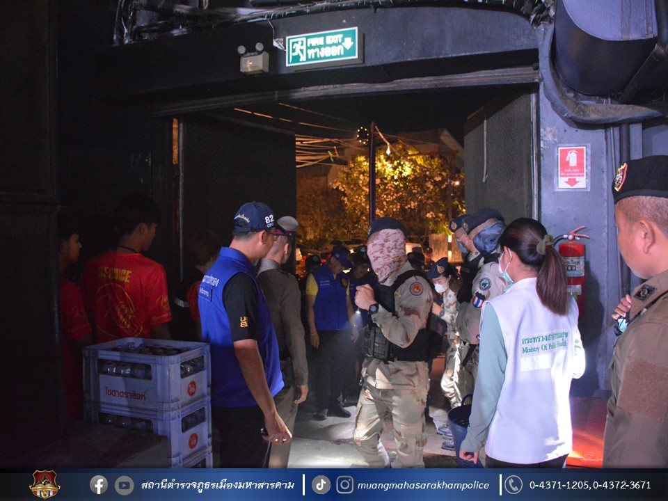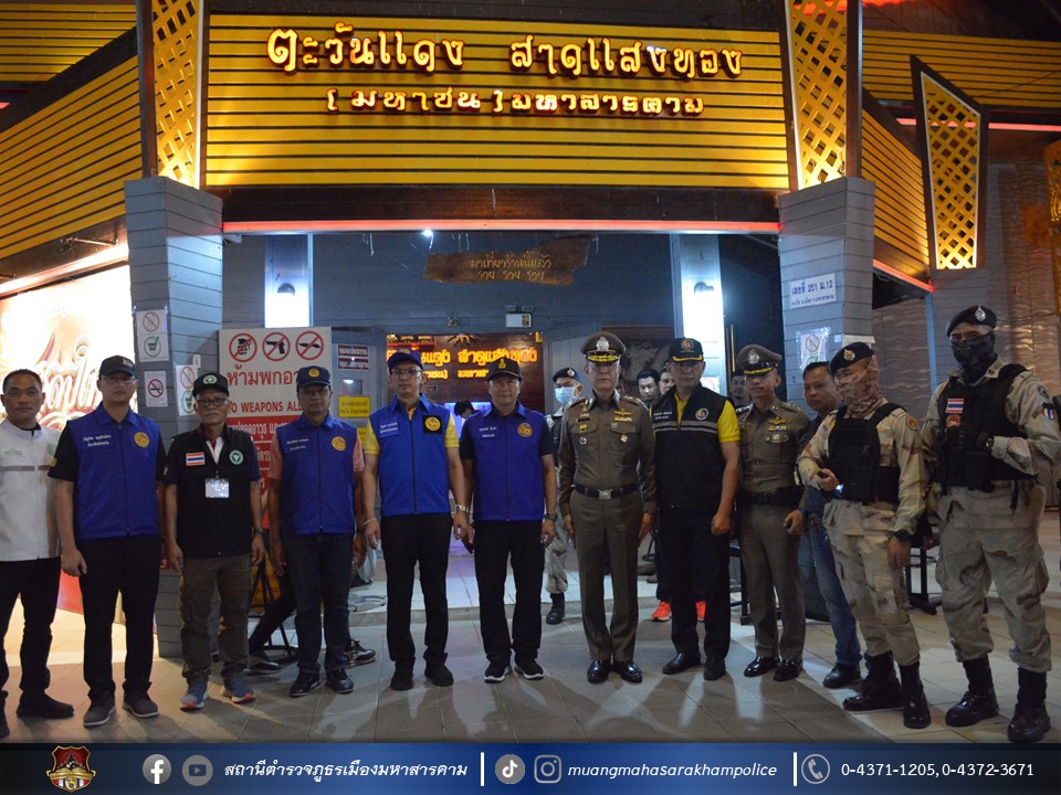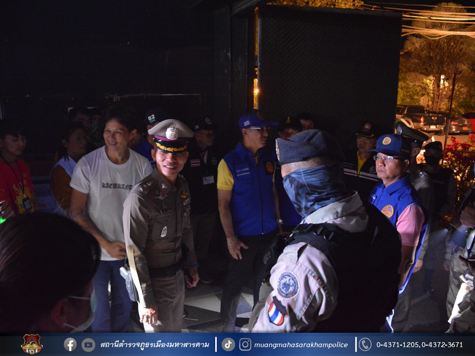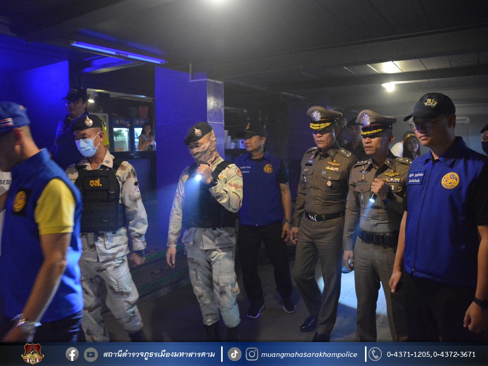 🔸จังหวัดมหาสารคาม จึงให้หน่วยในสังกัดดำเนินการรักษาความสงบเรียบร้อยในพื้นที่โดยการจัดระเบียบสังคม โดยเฉพาะสถานบริการ และสถานประกอบการที่เปิดให้บริการในลักษณะที่คล้ายกับสถานบริการ ที่อาจเกิดการกระทำที่เป็นการกระทำอันฝ่าฝืนต่อกฎหมายนั้น จึงได้บูรณาการกำลังกับหน่วยงานที่เกี่ยวข้อง โดยมี