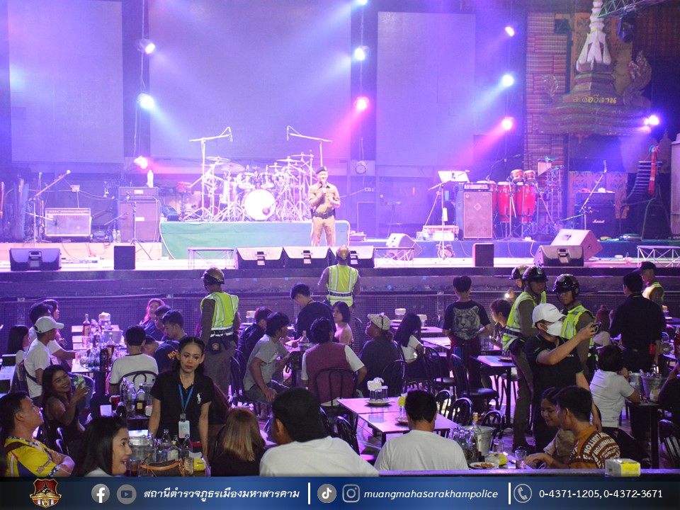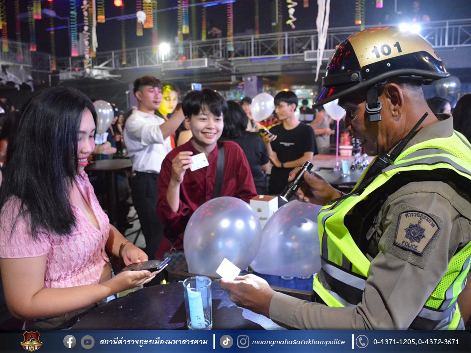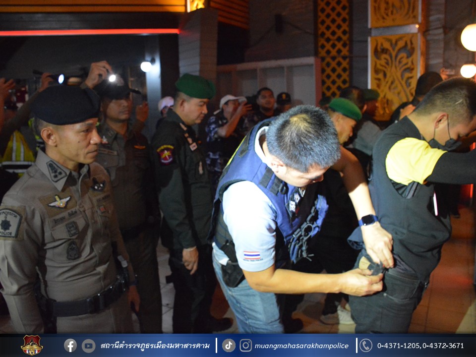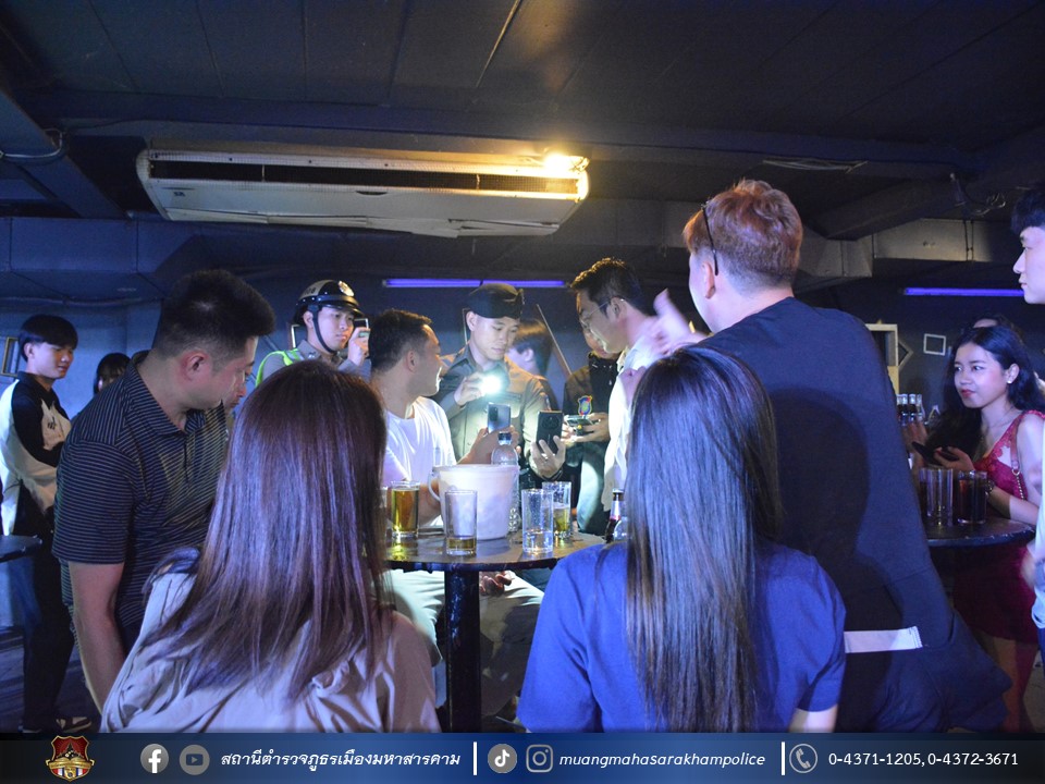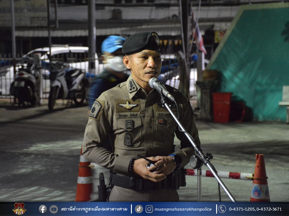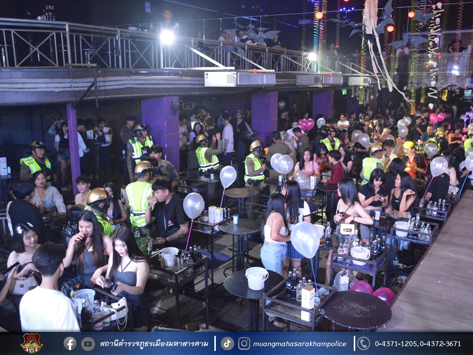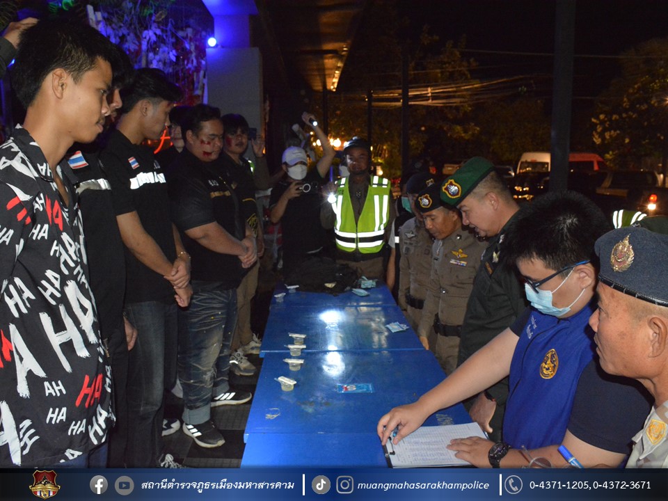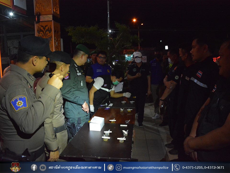 พร้อมด้วยเจ้าหน้าที่ฝ่ายปกครองอำเภอเมืองมหาสารคาม เจ้าหน้าที่สาธารณสุขอำเภอเมืองมหาสารคาม ข้าราชการตำรวจ กก.สส.ภ.จว.มหาสารคาม ข้าราชการตำรวจ สตม.จว.มหาสารคาม ข้าราชการตำรวจท่องเที่ยว กก.1 บก.ทท.2 และข้าราชการตำรวจ สภ.เมืองมหาสารคาม ร่วมพิธีปล่อยแถวชุดจัดระเบียบสังคม และตรวจสถานบริการเนื่องในวันฮาโลวีน มีลำดับการตรวจสถานบริการดังต่อไปนี้