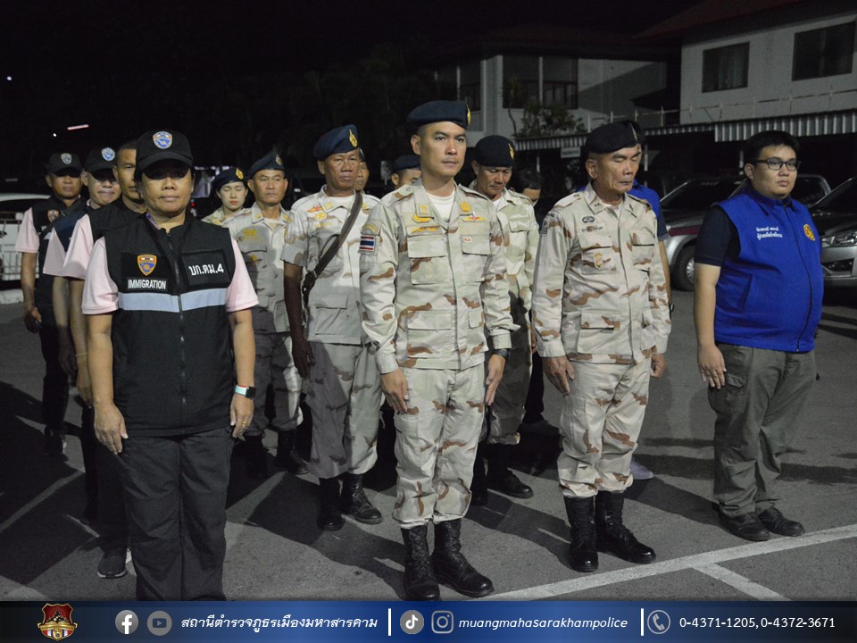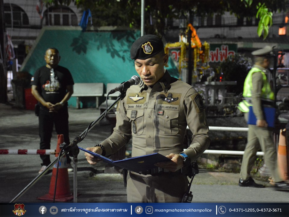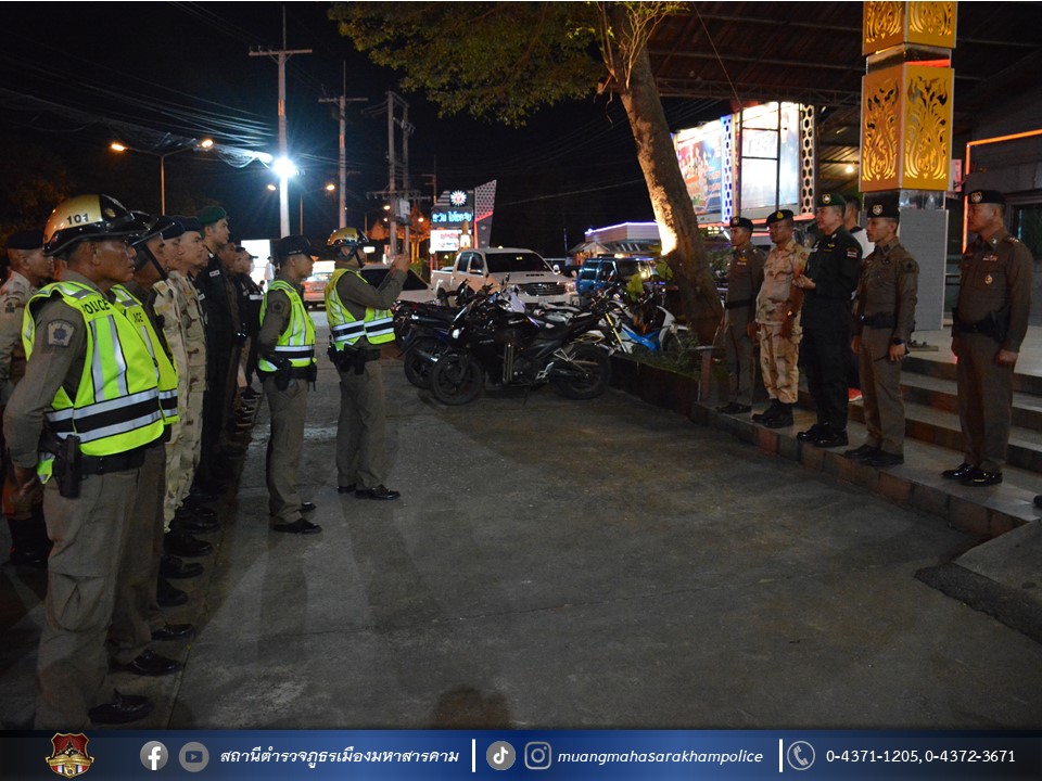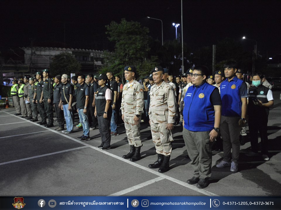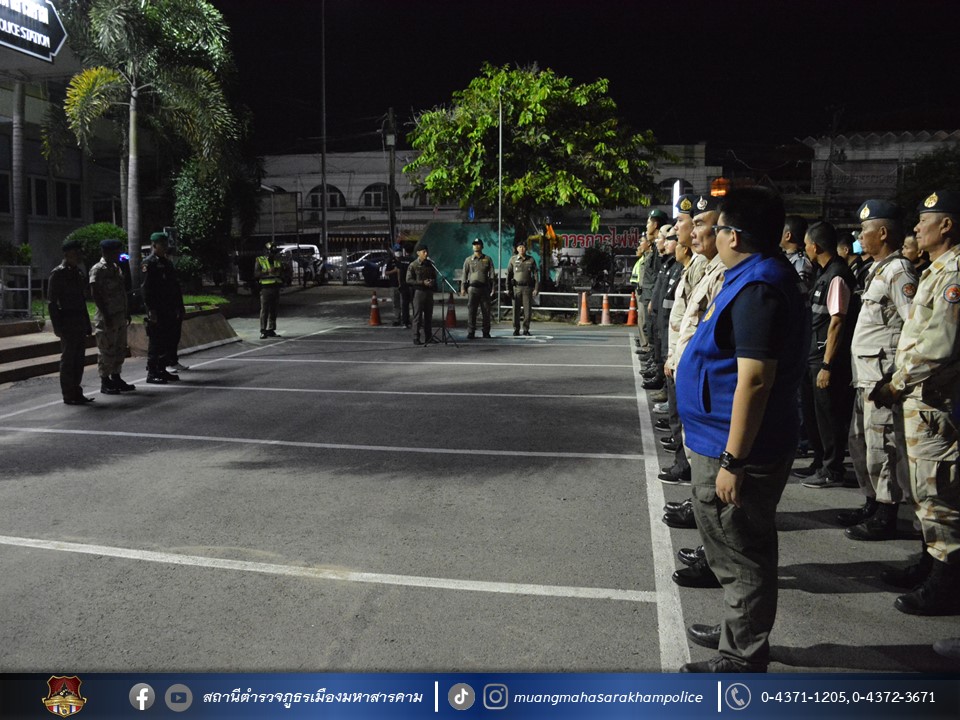 วันที่ 31 ตุลาคม 2566 เวลา 22.30 น. พล.ต.ต.พรชัย ชลอเดช รรท.ผบก.ภ.จว.มหาสารคาม มอบหมายให้ พ.ต.อ.นุติ ศักดิ์สุภาพ ผกก.สืบสวน ภ.จว.มหาสารคาม เป็นประธานในพิธีปล่อยแถวชุดจัดระเบียบสังคม และตรวจสถานบริการเนื่องในวันฮาโลวีน ตามตำรวจภูธรจังหวัดมหาสารคาม ให้หน่วยในสังกัดดำเนินการรักษาความสงบเรียบร้อยในพื้นที่โดยการจัดระเบียบสังคม โดยเฉพาะสถานบริการ และสถานประกอบการที่เปิดให้บริการในลักษณะที่คล้ายกับสถานบริการ ที่อาจเกิดการกระทำที่เป็นการกระทำอันฝ่าฝืนต่อกฎหมายนั้น จึงได้บูรณาการกำลังกับหน่วยงานที่เกี่ยวข้อง ประกอบด้วย