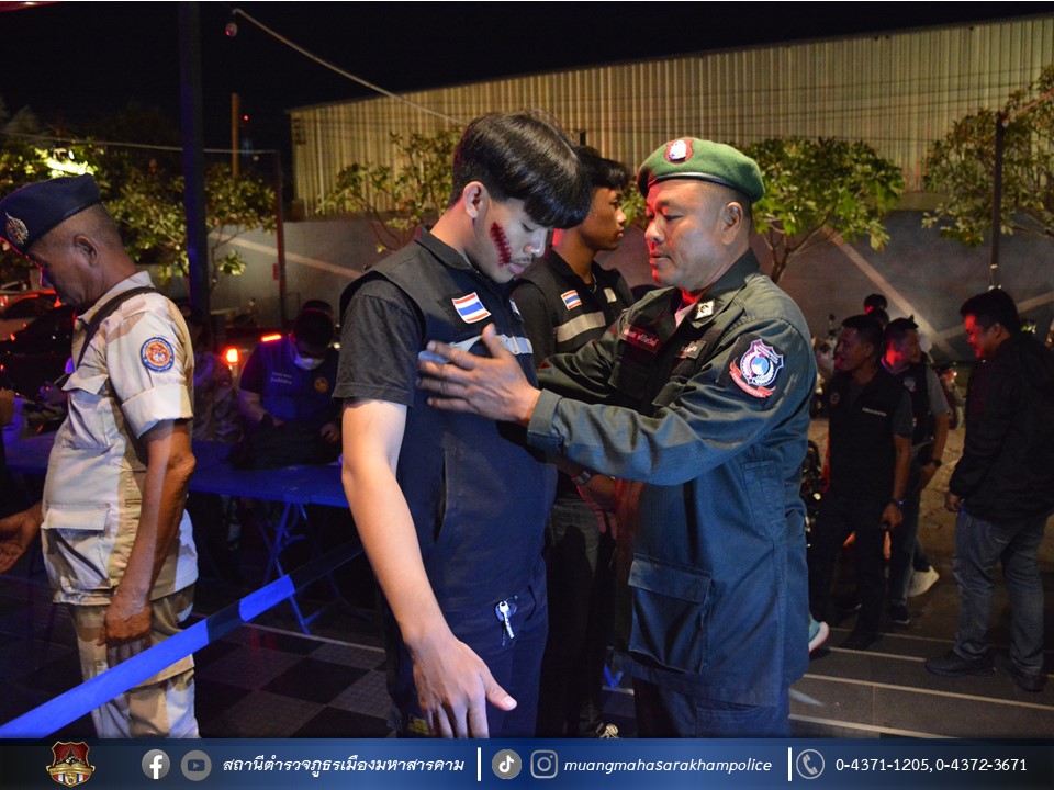 นายประกอบ โพธิ์ศรี ปลัดอาวุโสอำเภอเมืองมหาสารคาม, พ.ต.อ.ไกรทอง ชัยสิงห์ ผกก.สภ.เมืองมหาสารคาม, พ.ต.ท.หัสดีวิช ศรีกำพล รอง ผกก.ป.สภ.เมืองมหาสารคาม, พ.ต.ท.กฤษฎา นิติพจน์ รอง ผกก.สส.สภ.เมืองมหาสารคาม, พ.ต.ท.กิตภากร ภูคำสอน สวป.สภ.เมืองมหาสารคาม, พ.ต.ท.สุวันชัย สีทา สว.สส.สภ.เมืองมหาสารคาม