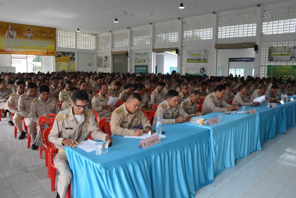 พร้อมหัวหน้าส่วนราชการ เจ้าหน้าที่ผู้เกี่ยวข้องร่วมประชุมกำนัน-ผู้ใหญ่บ้าน สารวัตรกำนัน ผู้ช่วยผู้ใหญ่บ้าน และแพทย์ประจำตำบลในเขตพื้นที่ อำเภอเมืองมหาสารคาม ประจำเดือน