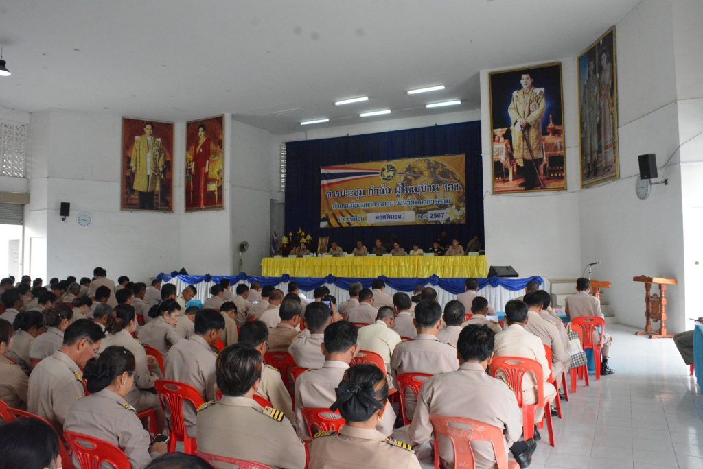พร้อมหัวหน้าส่วนราชการ เจ้าหน้าที่ผู้เกี่ยวข้องร่วมประชุมกำนัน-ผู้ใหญ่บ้าน สารวัตรกำนัน ผู้ช่วยผู้ใหญ่บ้าน และแพทย์ประจำตำบลในเขตพื้นที่ อำเภอเมืองมหาสารคาม ประจำเดือน พฤศจิกายน 2567 ณ หอประชุม ที่ว่าการอำเภอเมืองมหาสารคาม