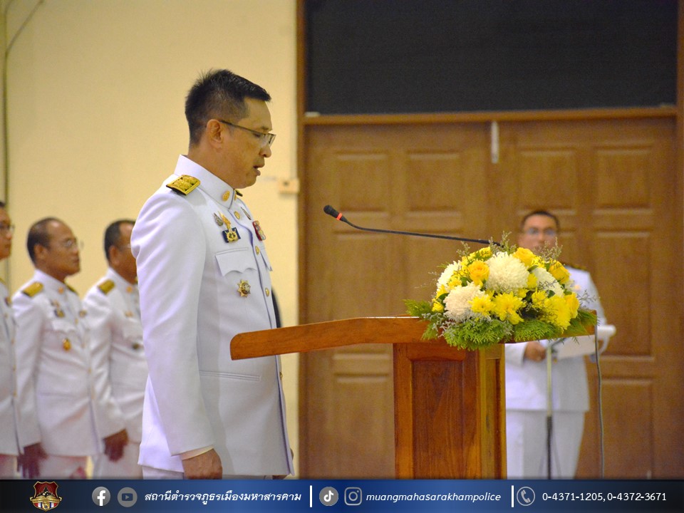 พร้อมด้วยเจ้าที่ตำรวจ สภ.เมืองมหาสารคาม ร่วมพิธีวางพานพุ่มดอกไม้สดเนื่องในวันพระบิดาแห่งฝนหลวง ประจำปี 2567 ณ หอประชุมศาลากลางจังหวัดมหาสารคาม