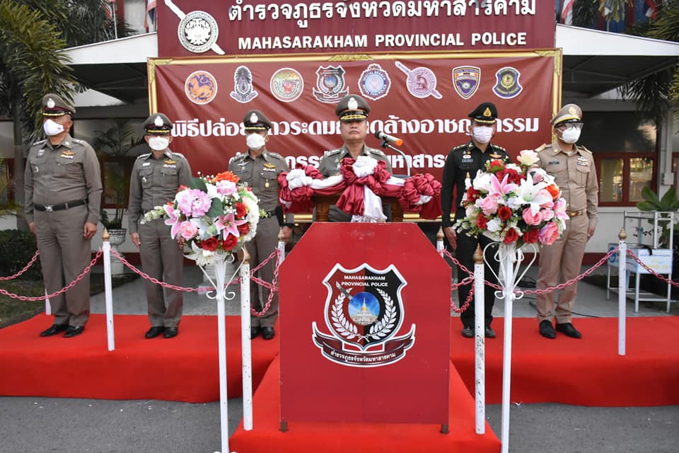 วันที่ 27 ธ.ค. 2565 เวลา 16.00 น. ณ บริเวณลานหน้า ภ.จว.มหาสารคาม พ.ต.อ.อิทธิเดช สุนทร ผกก.สภ.เมืองมหาสารคาม พร้อมด้วยข้าราขการตำรวจ สภ.เมืองฯ เข้าร่วมกับ กอ.รมน.จว.มค.,หน.สภ.ในสังกัด,ป้องกันจังหวัดฯ,องค์การบริหารสวนจังหวัด,เทศบาลเมืองฯ,ตำรวจทางหลวง,พิสูจน์หลักฐาน,สันติบาล,ตรวจคนเข้าเมือง,กองกำกับการสืบสวนฯ,สภ.กันทรวิชัย,สภ.โกสุมพิสัย,สภ.ดอนหว่าน,สภ.หนองซอน,สภ.มะค่า,สภ.นาสีนวน,สภ.ท่าตูม ร่วมพิธีปล่อยแถวระดมกวาดล้างอาชญากรรม รักษาความสงบเรียบร้อยและการดูแลอำนวยความสะดวกด้านการจราจรในช่วงเทศกาลวันขึ้นปีใหม่ 2566 โดยมี พล.ต.ต.ดิเรก จิตอร่าม ผบก.ภ.จว.มหาสารคาม เป็นประธานในพิธี