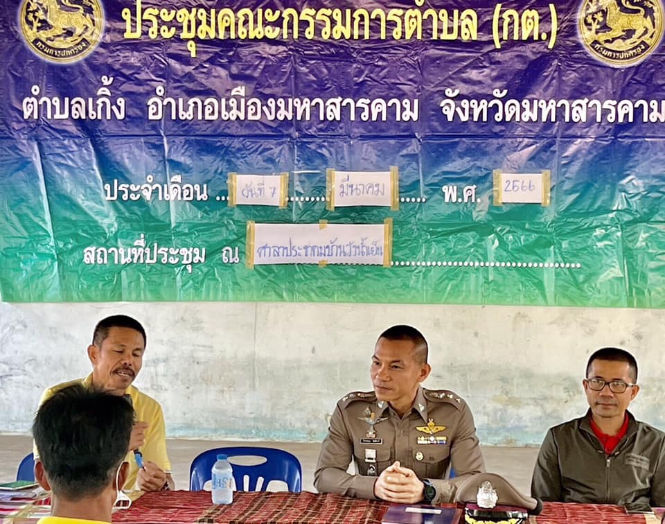 วันนี้ 7 มีนาคม 2566 (11.00-12.00) พ.ต.อ.ไกรทอง ชัยสิงห์ ผกก.สภ.เมืองมหาสารคาม พ.ต.ท.กฤษฎา นิติพจน์ รอง ผกก.สืบสวน สภ.เมืองมหาสารคาม พร้อมชุด ชมส.ร่วมประชุมสัญจรกำนันผู้ใหญ่บ้าน ประจำเดือนมีนาคม ที่ศาลาประชาคมบ้านวังน้ำเย็น ร่วมกับนายก อบต. กำนันผู้ใหญ่บ้าน ได้ชี้แจงการป้องกันอาชญากรรมในรูปแบบใหม่การป้องกันแก้ไขปัญหายาเสพติดการขอความร่วมมือให้ผู้นำประชาสัมพันธ์การถูกหลอกทางออนไลน์ การแจ้งเหตุด่วนเหตุร้ายทาง 191 ได้รับความร่วมมือเป็นอย่างดี