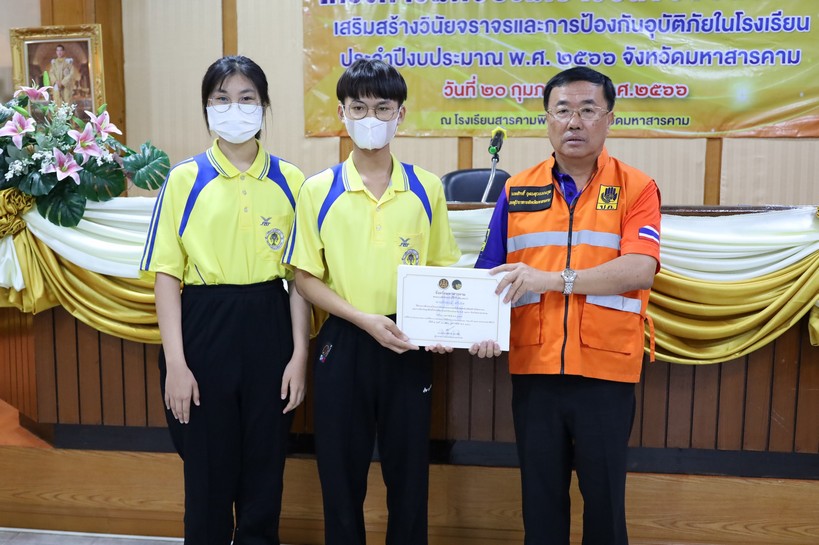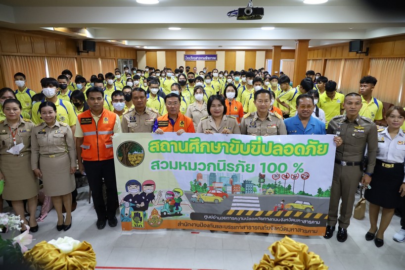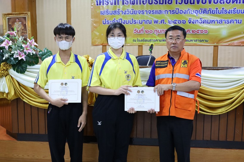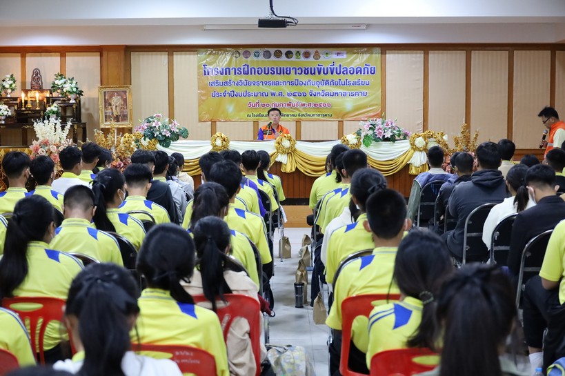 วันที่ 20 ก.พ.66 ตั้งแต่เวลา 09.00 น. ณโรงเรียนสารคามพิทยาคม อำเภอเมือง จังหวัดมหาสารคาม นายนพสิทธิ์ อุดมสุวรรณกุล รองผู้ว่าราชการจังหวัดมหาสารคาม เป็นประธานเปิดโครงการฝึกอบรมเยาวชนขับขี่ปลอดภัยเสริมสร้างวินัยจราจร และการป้องกันอุบัติภัยในโรงเรียน ประจำปี พ.ศ.2566 โดยมี ปลัดจังหวัดมหาสารคาม นายอำเภอ พ.ต.อ.ไกรทอง ชัยสิงห์ ผกก.สภ.เมืองมหาสารคาม พร้อมด้วย พ.ต.ท.ชัยยุทธ รอดเวียง สว.จร.สภ.เมืองมหาสารคาม และ ร.ต.อ.อภิรัฐ เอกวารีย์ รอง สว.จร.สภ.เมืองมหาสารคาม( ร่วมเป็นวิทยากร ให้ความรู้ เรื่องกฎหมายจราจร) หัวหน้าสำนักงานป้องกันและบรรเทาสาธารณภัยจังหวัดมหาสารคาม หัวหน้าส่วนราชการ คณะครู บุคลากร ภาคีเครือข่ายด้านความปลอดภัยทางถนน และนักเรียน เข้าร่วมโครงการดังกล่าง วัตถุประสงค์เป็นการให้ความรู้เพื่อลดการเกิดอุบัติเหตุในกลุ่มเยาวชน