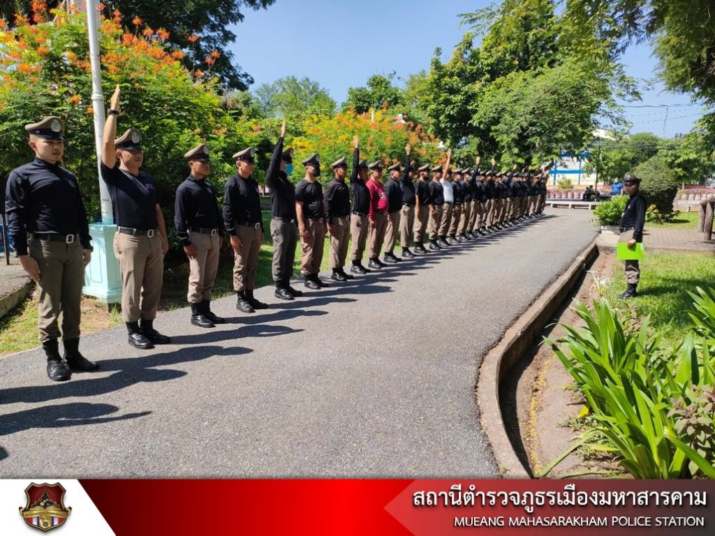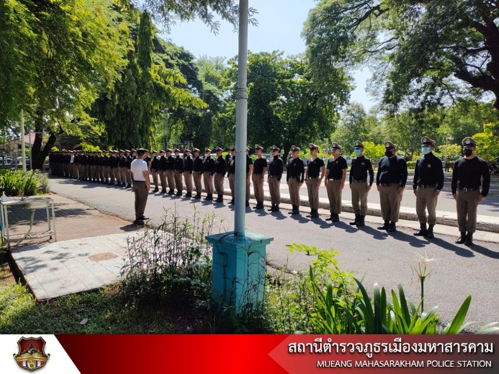 พร้อมด้วย ข้าราชการตำรวจ สภ.เมืองมหาสารคาม ฝึกทบทวนประจำสัปดาห์ การฝึกแถวชิด การฝึกท่าบุคคลมือเปล่า ฝึกยุทธวิธีการใช้ไม้ง่ามในการเข้าระงับเหตุ และการฝึกการเข้าตรวจค้นภายในอาคาร เพื่อเป็นการปลูกฝังวินัย สร้างความสามัคคีในหมู่ข้าราชการตำรวจ ทบทวนการฝึกตามแบบฝึก ตร. และเป็นการเสริมสร้างสมรรถภาพร่างกายแก่ข้าราชการตำรวจในสังกัด
