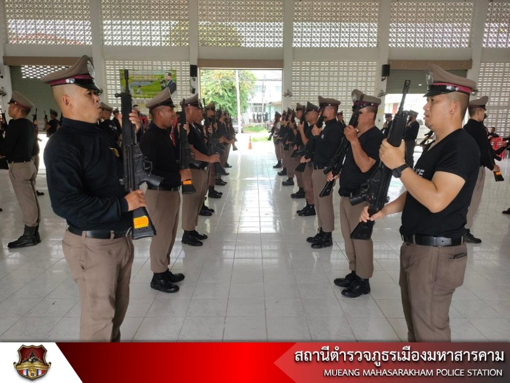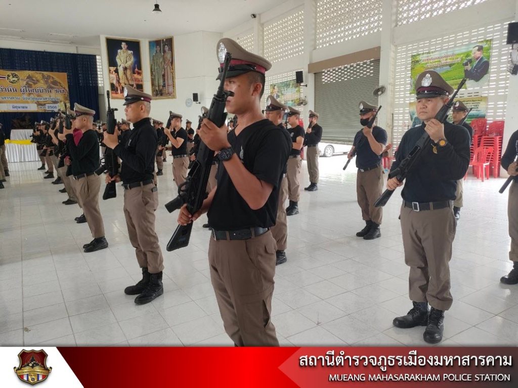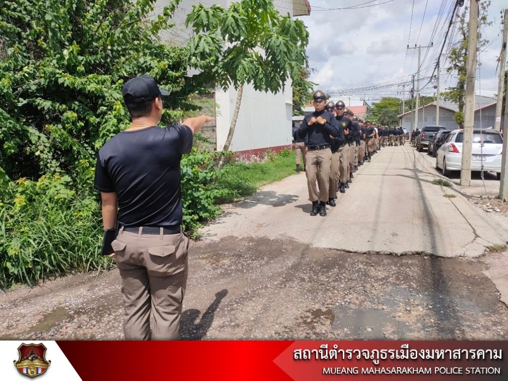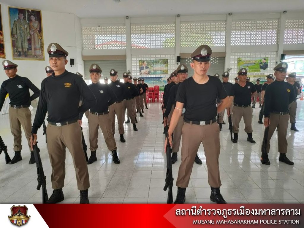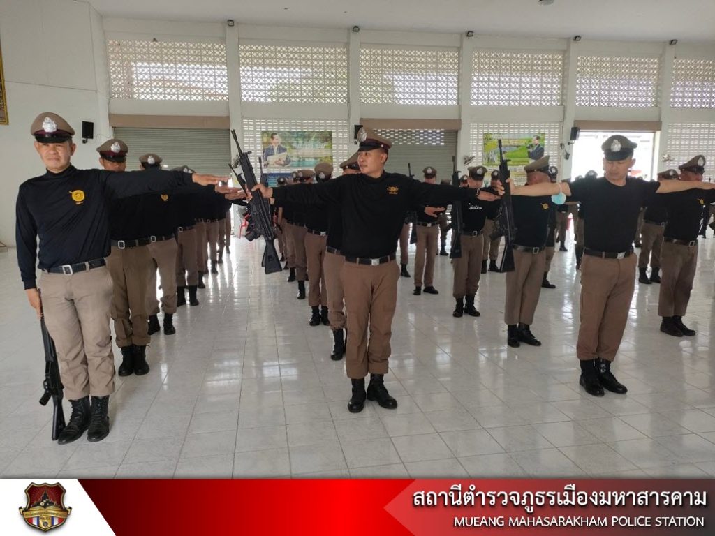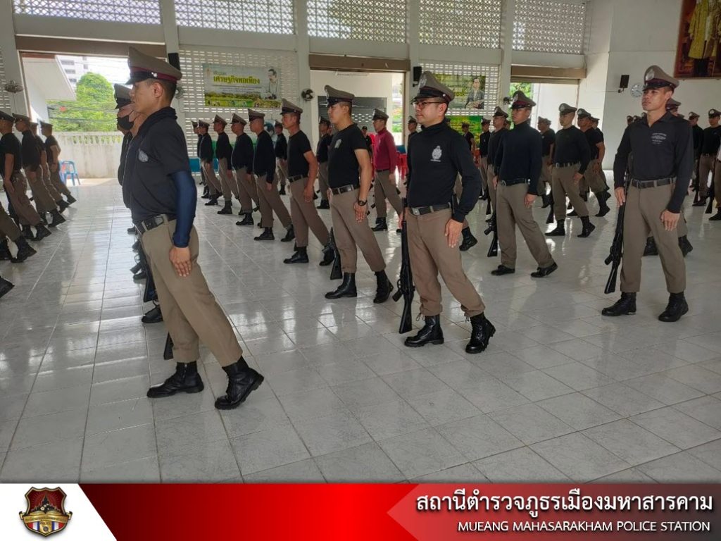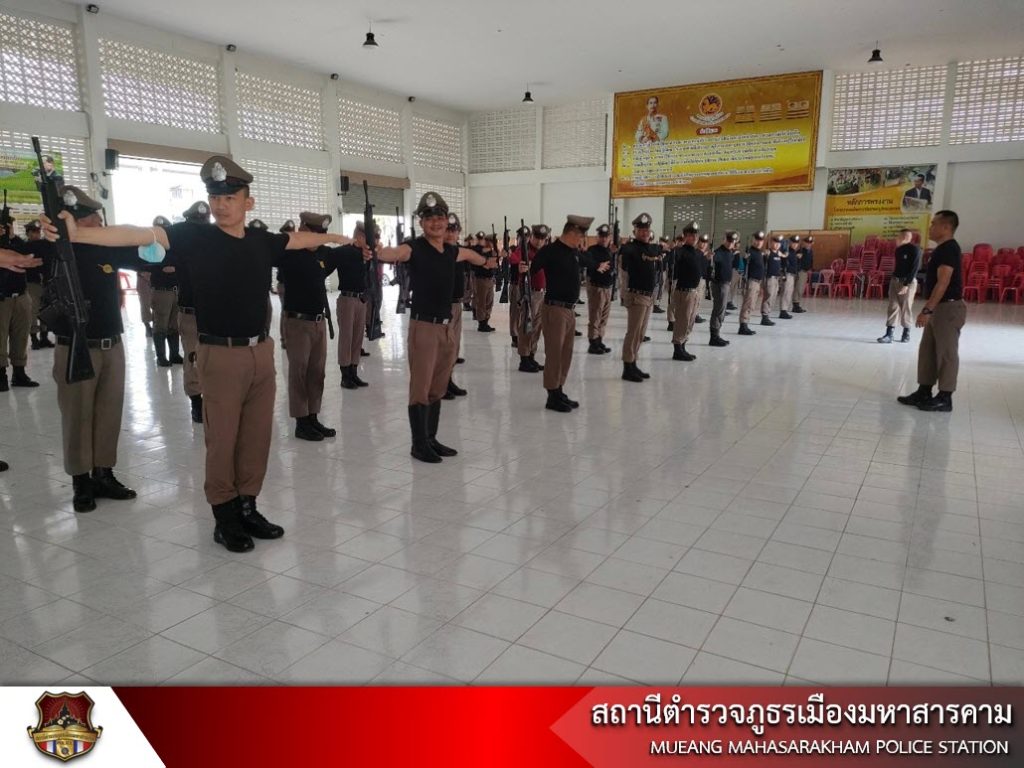 เมื่อวันที่ 6 มิถุนายน 2566 เวลา 13.30 น. พ.ต.อ.ไกรทอง ชัยสิงห์ ผกก.สภ.เมืองมหาสารคาม, พ.ต.ท.กฤษฎา นิติพจน์ รอง ผกก.สส.สภ.เมืองมหาสารคาม, พ.ต.ท.กิตภากร ภูคำสอน สวป.สภ.เมืองมหาสารคาม พร้อมด้วย ข้าราชการตำรวจ สภ.เมืองมหาสารคาม ฝึกทบทวนประจำสัปดาห์ ดังนี้ – การฝึกแถวชิด, – การฝึกท่าบุคคลมือเปล่า, – การฝึกบุคคลประกอบอาวุธ, – ฝึกยุทธวิธีการใช้ไม้ง่ามในการเข้าระงับเหตุ และการฝึกการเข้าตรวจค้นภายในอาคาร