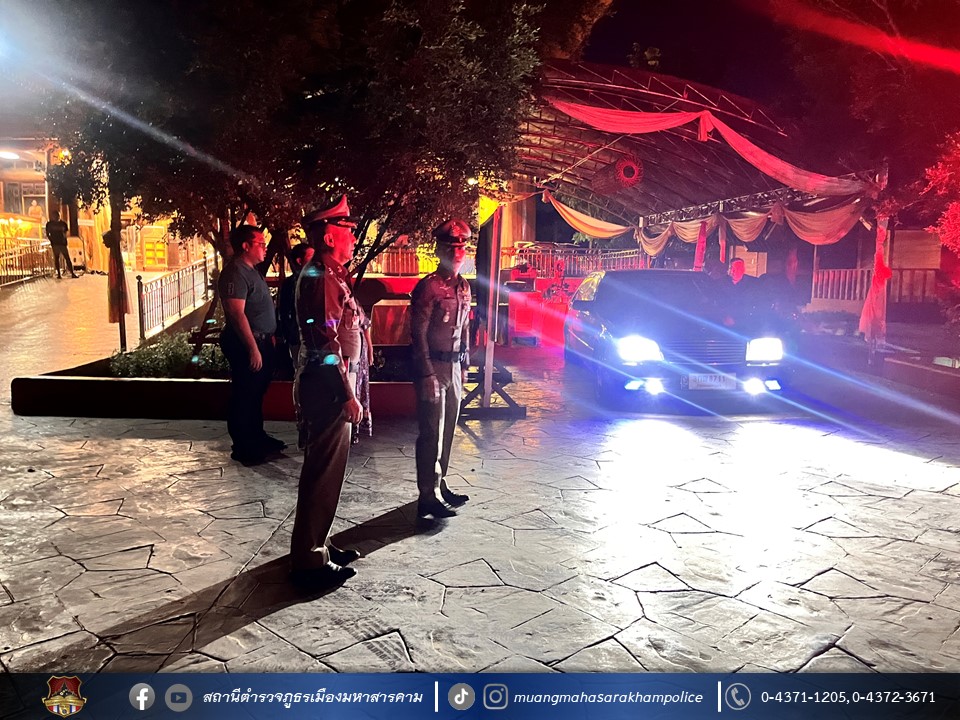 🔸จากนั้น เวลา 20.00 น. พ.ต.อ.ไกรทอง ชัยสิงห์ ผกก.สภ.เมืองมหาสารคาม ได้ปล่อยแถว เจ้าหน้าที่ตำรวจ สภ.เมืองมหาสารคาม ประกอบด้วยชุดอารักขา/รักษาความปลอดภัยบุคคลสำคัญ และชุดเคลื่อนที่เร็ว รักษาความปลอดภัยรอบบริเวณที่พัก