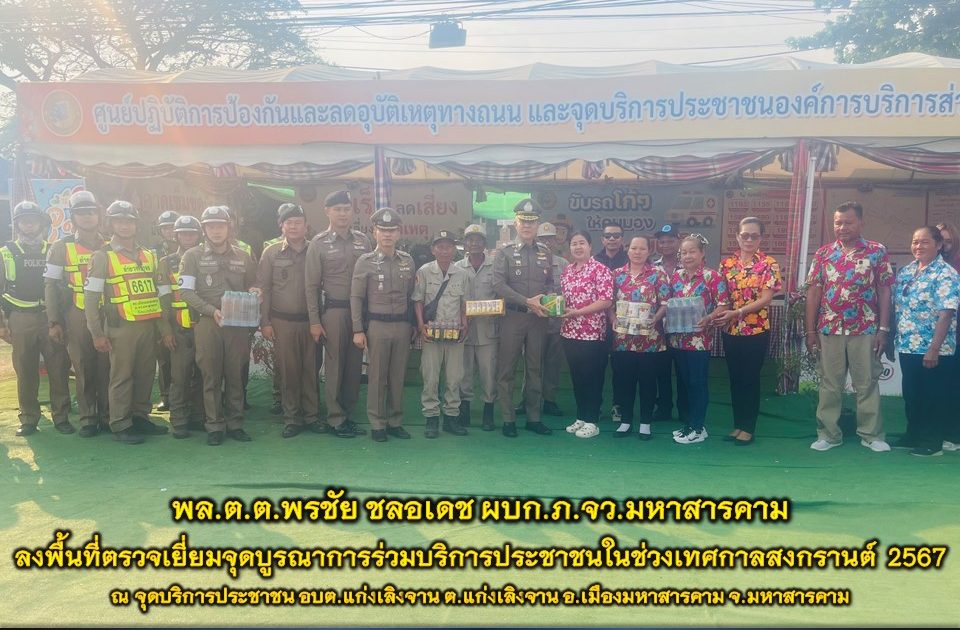 🔹พล.ต.ต.พรชัย ชลอเดช ผบก.ภ.จว.มหาสารคาม ลงพื้นที่ตรวจเยี่ยมจุดบูรณาการร่วมบริการประชาชนในช่วงเทศกาลสงกรานต์ 2567 ณ จุดบริการประชาชน อบต.แก่งเลิงจาน ต.แก่งเลิงจาน อ.เมืองมหาสารคาม จ.มหาสารคาม พบ