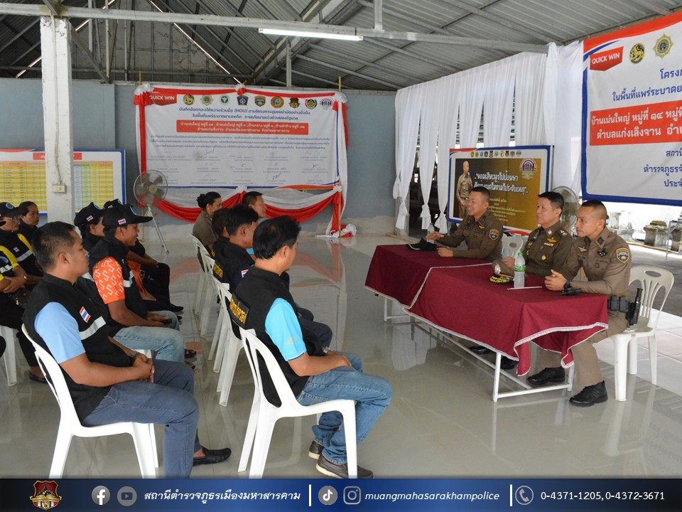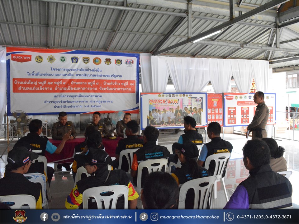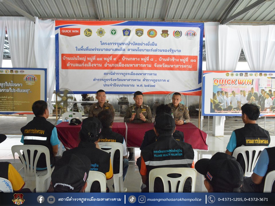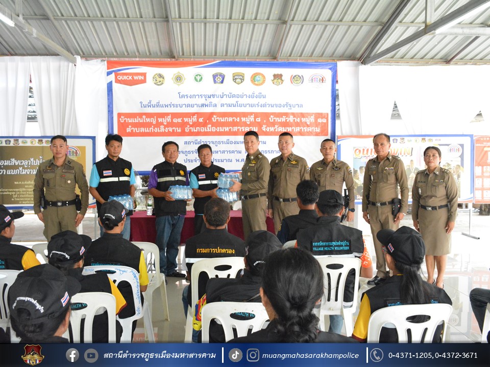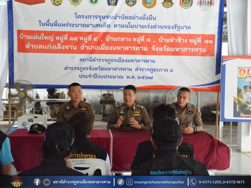 🔹ตามโครงการชุมชนบำบัดอย่างยั่งยืน ในพื้นที่แพร่ระบาดยาเสพติด ตามนโยบายเร่งด่วนของรัฐบาล ประจำปี 2567 บ้านเม่นใหญ่ หมู่ที่ 4,หมู่ที่ 14 บ้านหัวช้าง หมู่ที่ 11 และบ้านกลาง หมู่ที่ 8 ต.แก่งเลิงจาน อ.เมืองมหาสารคาม จ.มหาสารคาม