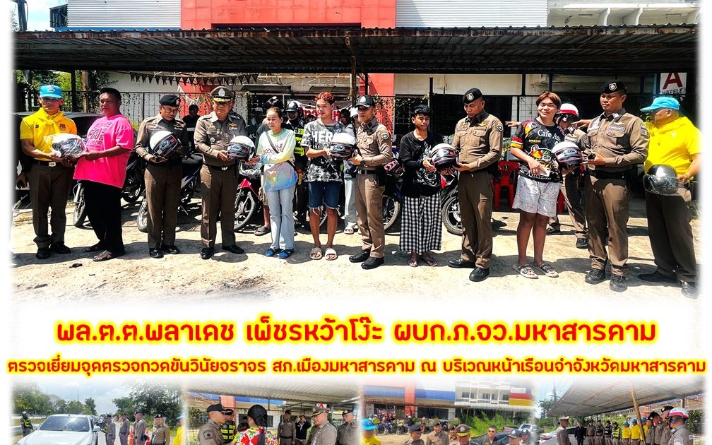 🔸 จากนั้น พล.ต.ต.พลาเดช เพ็ชรหว้าโง๊ะ ผบก.ภ.จว.มหาสารคาม ได้ร่วมมอบหมวกนิรภัยให้แก่ประชาชน ที่ขับขี่รถจักรยานยนต์สัญจรผ่านจุดตรวจฯ ไม่สวมหมวกนิรภัย และได้มอบหมายให้ พ.ต.อ.ไกรทอง ชัยสิงห์ ผกก.สภ.เมืองมหาสารคาม ได้อบรมสร้างความเข้าใจในกฎหมาย วินัยจราจร และประโยชน์ของหมวกนิรภัย ให้ประชาชนเข้าใจ และปฏิบัติตามกฎจราจรอย่างเคร่งครัด