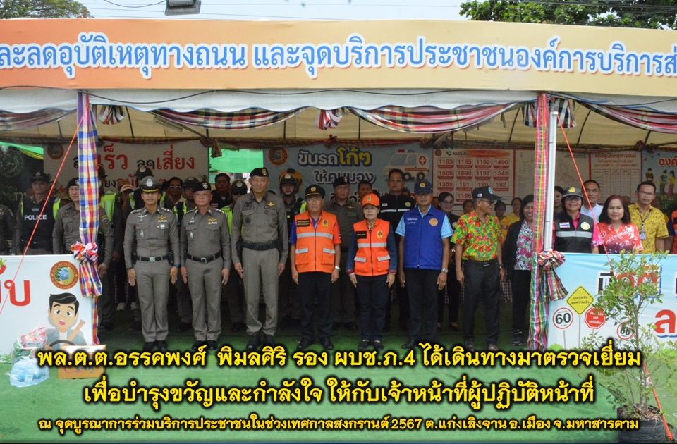 🔸พล.ต.ต.อรรคพงศ์ พิมลศิริ รอง ผบช.ภ.4 ได้เดินทางมาตรวจเยี่ยม เพื่อบำรุงขวัญและกำลังใจ ให้กับเจ้าหน้าที่ผู้ปฏิบัติหน้าที่ ณ จุดบูรณาการร่วมบริการประชาชนในช่วงเทศกาลสงกรานต์ 2567 อบต.แก่งเลิงจาน ต.แก่งเลิงจาน อ.เมืองมหาสารคาม จ.มหาสารคาม โดยมี