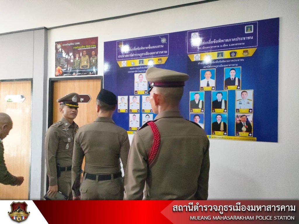 เมื่อวันที่ 7 สิงหาคม 2566 เวลา 11.30 น. พล.ต.ท.ไตรรงค์ ผิวพรรณ ผบช.กมค., พร้อมคณะเดินทางตรวจเยี่ยมศูนย์ไกล่เกลี่ย ของ สภ.เมืองมหาสารคาม และประชุมขับเคลื่อนการดำเนินการศูนย์ไกล่เกลี่ย ประจำสถานีตำรวจภูธรเมืองมหาสารคาม โดยมี พล.ต.ต.ดิเรก จิตอร่าม ผบก.ภ.จว.มหาสารคาม, พ.ต.อ.อุกกฤษฎ์ ทรงชัยสงวน รอง ผบก.ภ.จว.มหาสารคาม, พ.ต.อ.พิชิต ดียา รอง ผบก.ภ.จว.มหาสารคาม, พ.ต.อ.ธวัชชัย สัตยพัฒน์ รอง ผบก.ภ.จว.มหาสารคาม, พ.ต.อ.นพ นรชาญ รอง ผบก.ภ.จว.มหาสารคาม, พ.ต.อ.อัครวินต์ สุคนธวิท รอง ผบก.ภ.จว.มหาสารคาม, พ.ต.อ.ไกรทอง ชัยสิงห์ ผกก.สภ.เมืองมหาสารคาม ตัวแทนผู้ไกล่เกลี่ยภาคประชาชน เจ้าหน้าที่ที่เกี่ยวข้อง และข้าราชการตำรวจ ให้การต้อนรับ ณ ห้องประชุมสืบสวน สภ.เมืองมหาสารคาม
