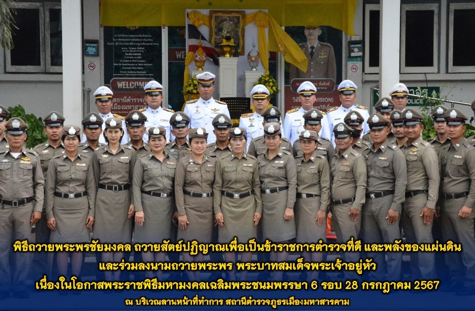 🔸พร้อมด้วยข้าราชการตำรวจ สภ.เมืองมหาสารคาม ร่วมพิธีถวายพระพรชัยมงคล ถวายสัตย์ปฏิญาณเพื่อเป็นข้าราชการตำรวจที่ดี และพลังของแผ่นดิน และร่วมลงนามถวายพระพร พระบาทสมเด็จพระเจ้าอยู่หัว เนื่องในโอกาสพระราชพิธีมหามงคลเฉลิมพระชนมพรรษา 6 รอบ 28 กรกฎาคม 2567 ณ บริเวณลานหน้า สภ.เมืองมหาสารคาม
