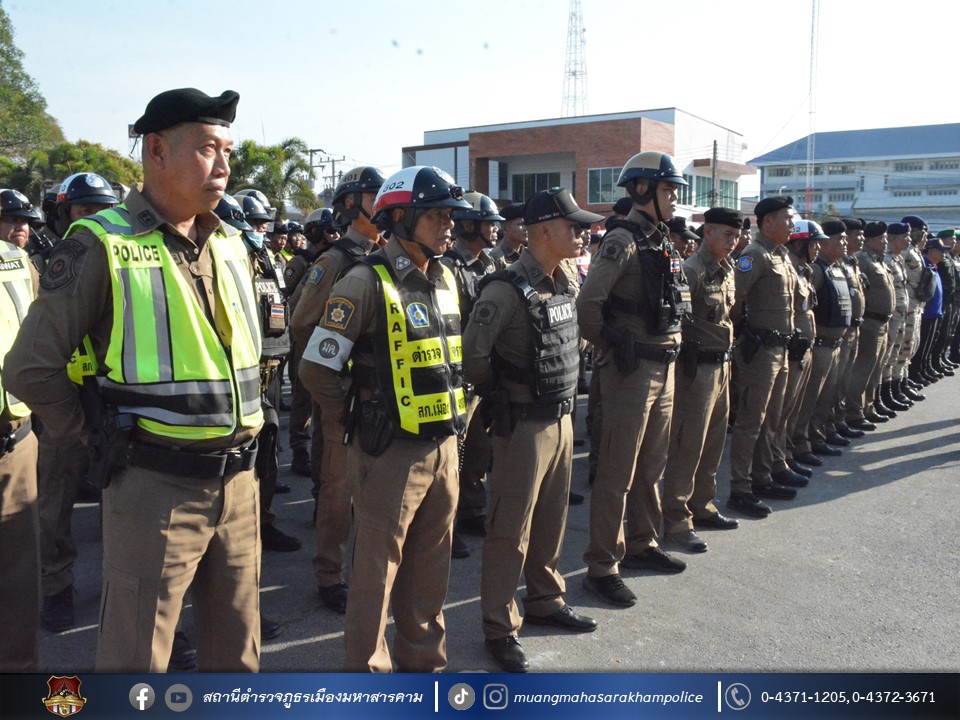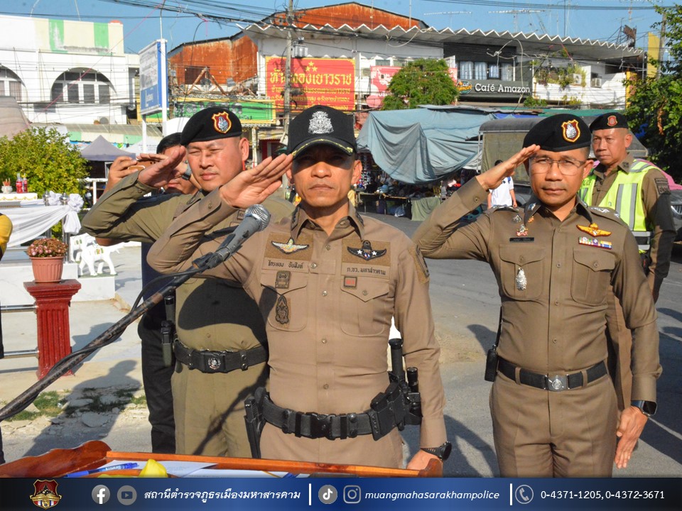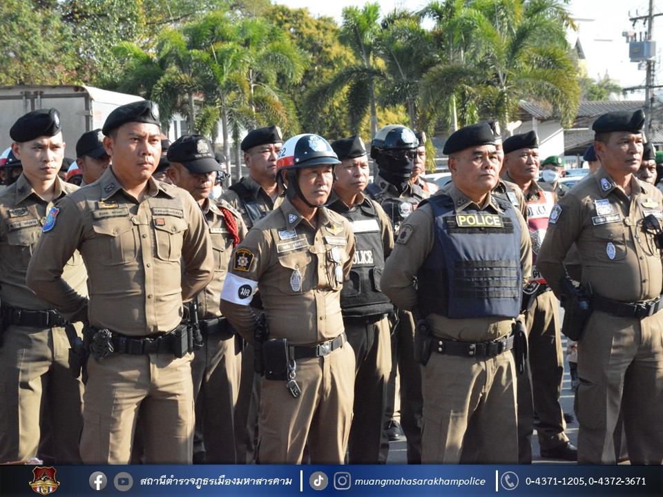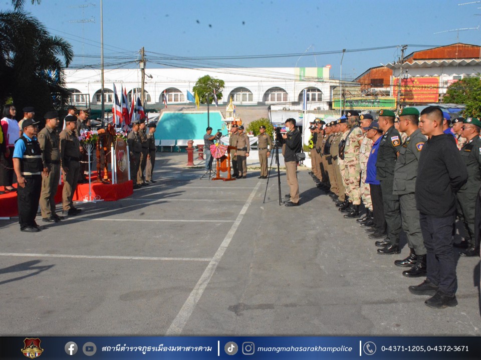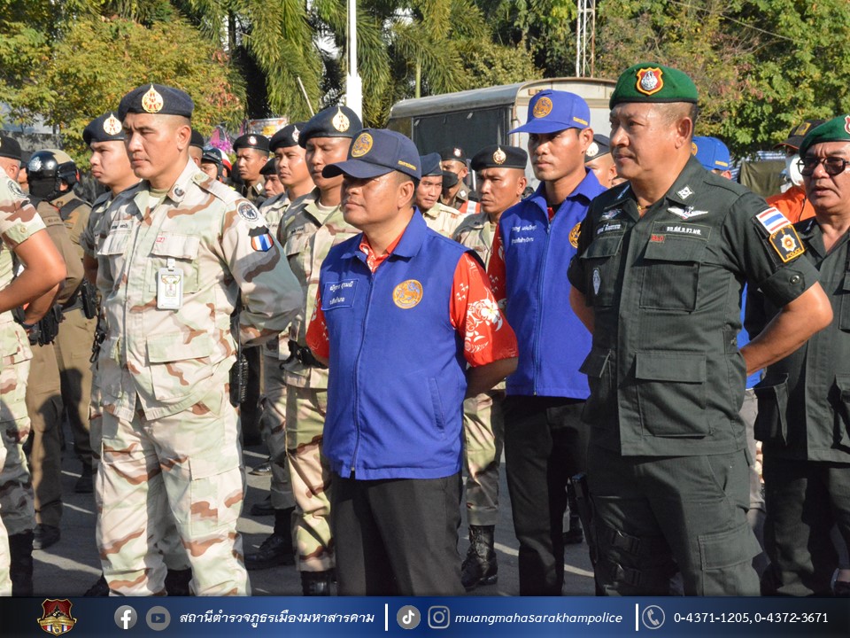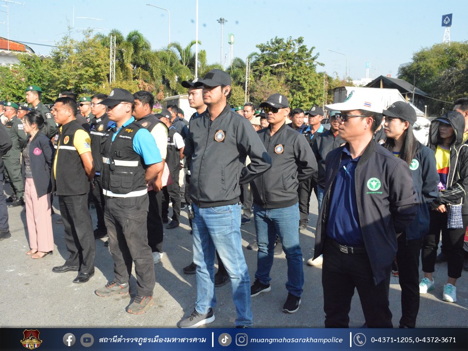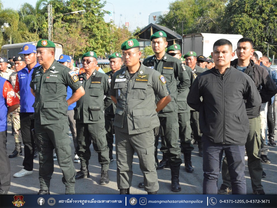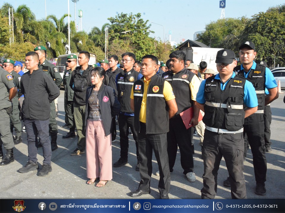 🔸พร้อมด้วยเจ้าหน้าที่พัฒนาสังคมและความมั่นคงของมนุษย์จังหวัดมหาสารคาม, เจ้าหน้าที่ฝ่ายปกครองอำเภอเมืองมหาสารคาม, เจ้าหน้าที่สาธารณสุขอำเภอเมืองมหาสารคาม, เจ้าหน้าที่พิสูจน์หลักฐานจังหวัดมหาสารคาม, เจ้าหน้าที่ตำรวจท่องเที่ยวจังหวัดมหาสารคาม, เจ้าหน้าที่ตำรวจสันติบาลจังหวัดมหาสารคาม, เจ้าหน้าที่เทศบาลเมืองมหาสารคาม, เจ้าหน้าที่ตำรวจ ในสังกัด ภ.จว.มหาสารคาม ประกอบด้วย กก.สืบสวน ภ.จว.มหาสารคาม, สภ.กันทรวิชัย, สภ.แกดำ, สภ.โกสุมพิสัย, สภ.เขวาใหญ่, สภ.ท่าตูม, สภ.มะค่า และเจ้าหน้าที่ตำรวจ สภ.เมืองมหาสารคาม ร่วมพิธีปล่อยแถว ณ ลานหน้า สภ.เมืองมหาสารคาม