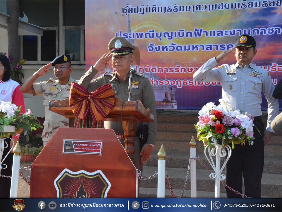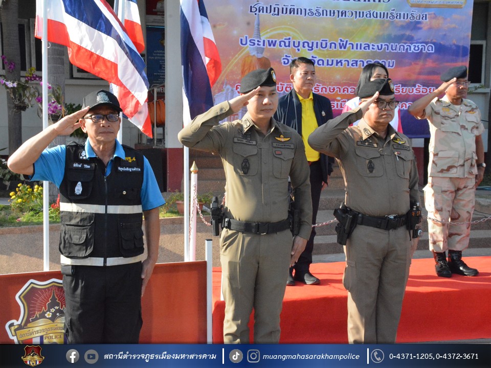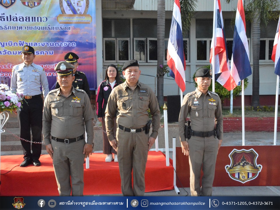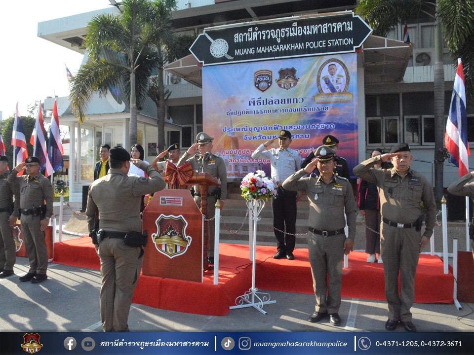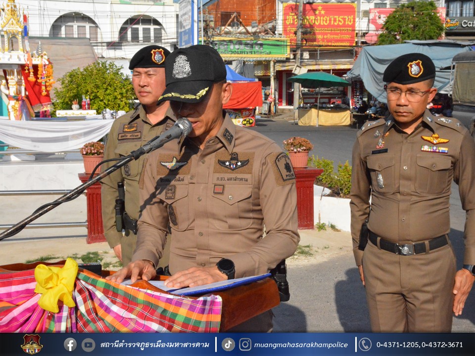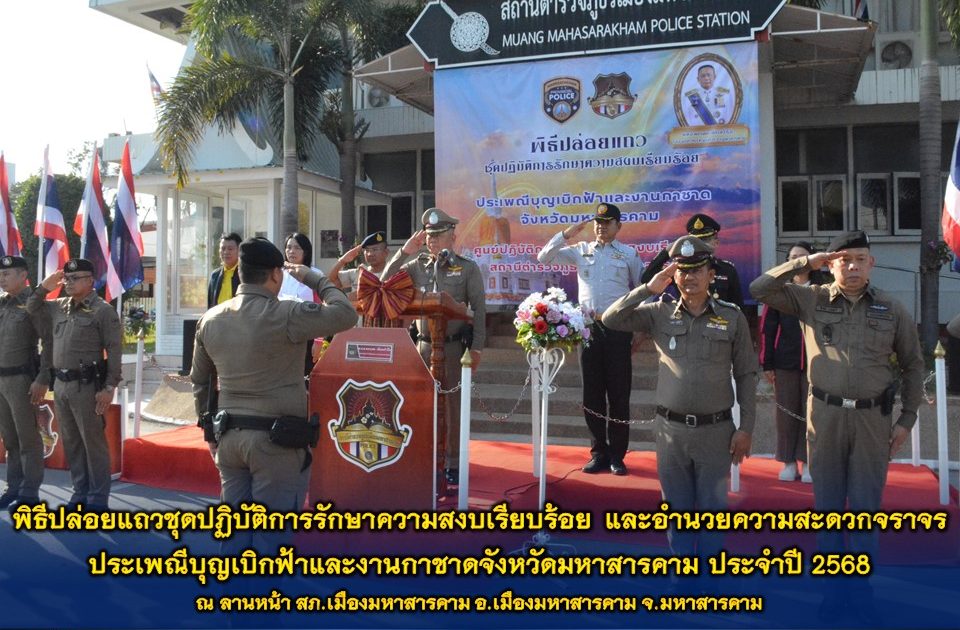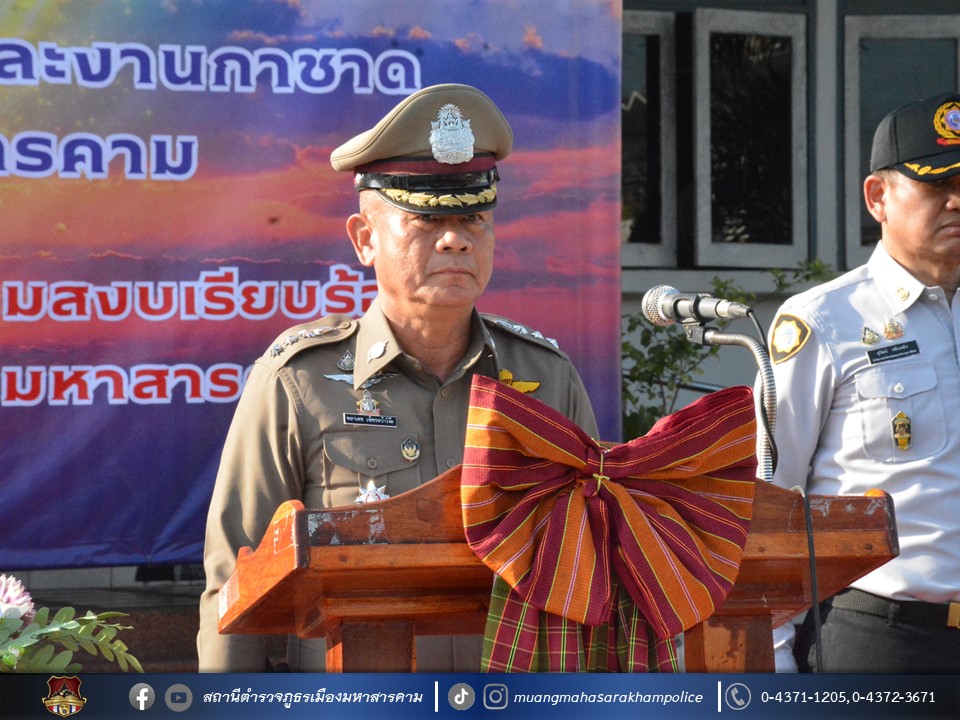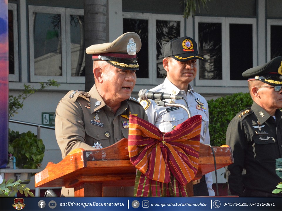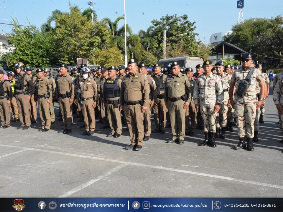 🔸พร้อมด้วยเจ้าหน้าที่พัฒนาสังคมและความมั่นคงของมนุษย์จังหวัดมหาสารคาม, เจ้าหน้าที่ฝ่ายปกครองอำเภอเมืองมหาสารคาม, เจ้าหน้าที่สาธารณสุขอำเภอเมืองมหาสารคาม, เจ้าหน้าที่พิสูจน์หลักฐานจังหวัดมหาสารคาม, เจ้าหน้าที่ตำรวจท่องเที่ยวจังหวัดมหาสารคาม, เจ้าหน้าที่ตำรวจสันติบาลจังหวัดมหาสารคาม, เจ้าหน้าที่เทศบาลเมืองมหาสารคาม, เจ้าหน้าที่ตำรวจ ในสังกัด ภ.จว.มหาสารคาม ประกอบด้วย กก.สืบสวน ภ.จว.มหาสารคาม, สภ.กันทรวิชัย, สภ.แกดำ, สภ.โกสุมพิสัย, สภ.เขวาใหญ่, สภ.ท่าตูม, สภ.มะค่า และเจ้าหน้าที่ตำรวจ สภ.เมืองมหาสารคาม ร่วมพิธีปล่อยแถว ณ ลานหน้า สภ.เมืองมหาสารคาม