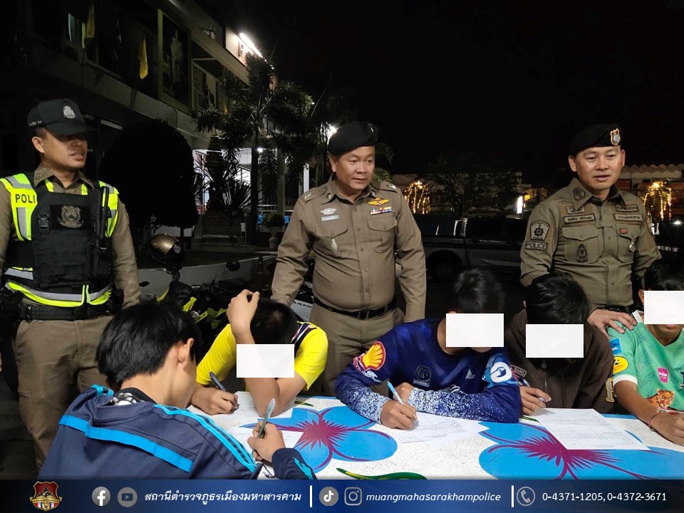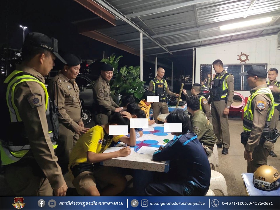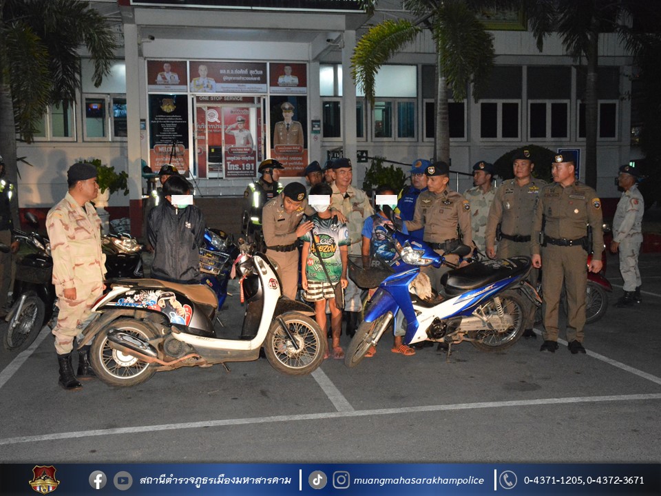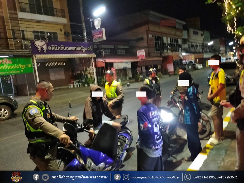 🔸พร้อมด้วยเจ้าหน้าที่ฝ่ายปกครอง อ.เมืองมหาสารคาม และเจ้าหน้าที่ตำรวจ สภ.เมืองมหาสารคาม สนธิกำลังในการลงพื้นที่ตรวจจุดเสี่ยงต่างๆ ในพื้นที่เขตอำเภอเมืองมหาสารคาม ตั้งแต่เวลา 22.00 น. ถึง 24.00 น. ซึ่งผลการปฏิบัติได้จัดทำประวัติเด็กและเยาวชน จำนวน 10 คน ตรวจยึดรถจักรยายนต์ จำนวน 7 คัน ซึ่งทางเจ้าหน้าที่ได้ประสานให้ผู้ปกครองมารับตัวและได้ให้รับทราบตามมาตรการก่อนจะให้มีการลงบันทึกรับทราบการชี้แจงตามนโยบาย