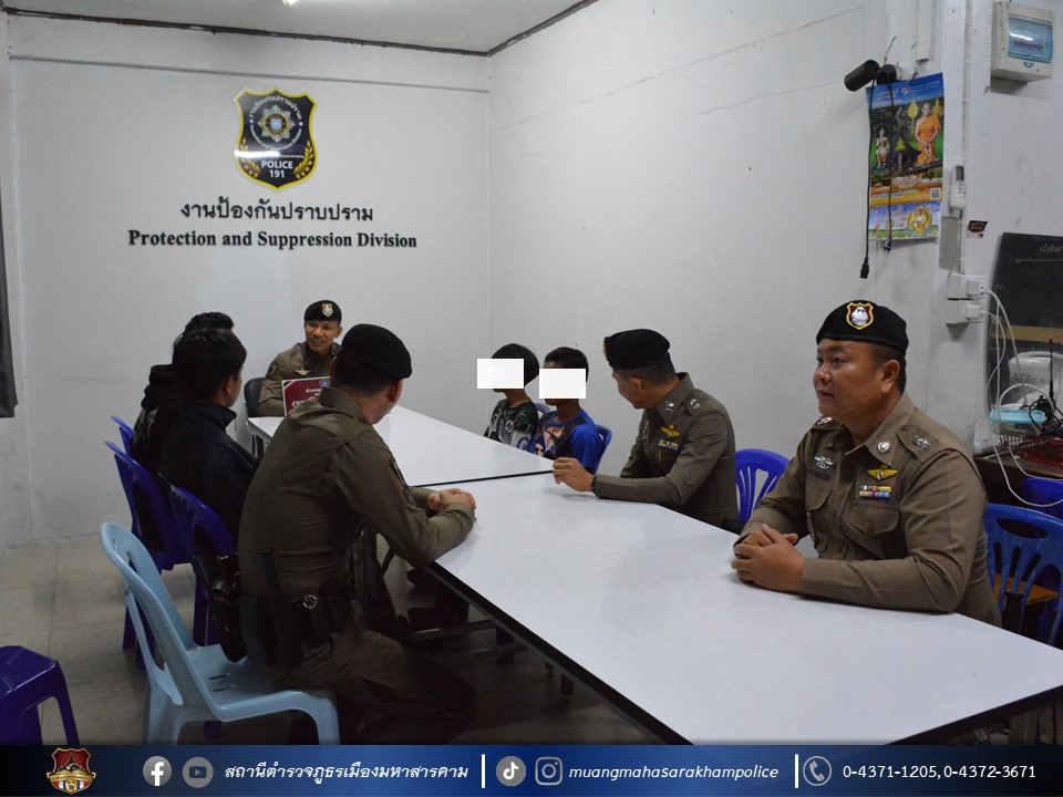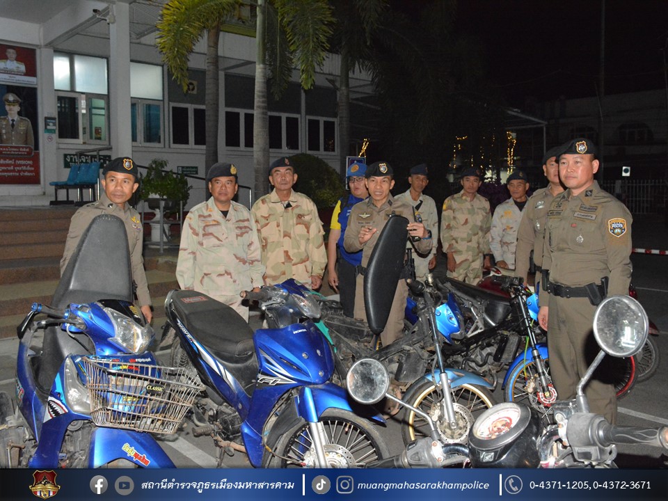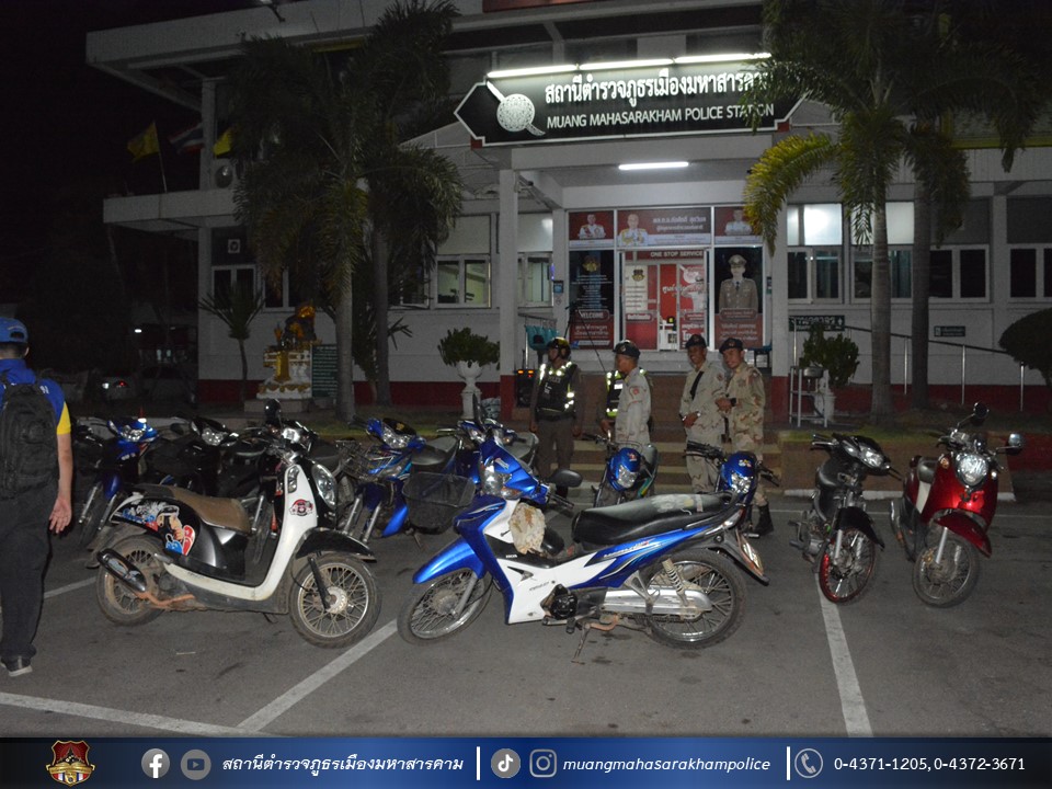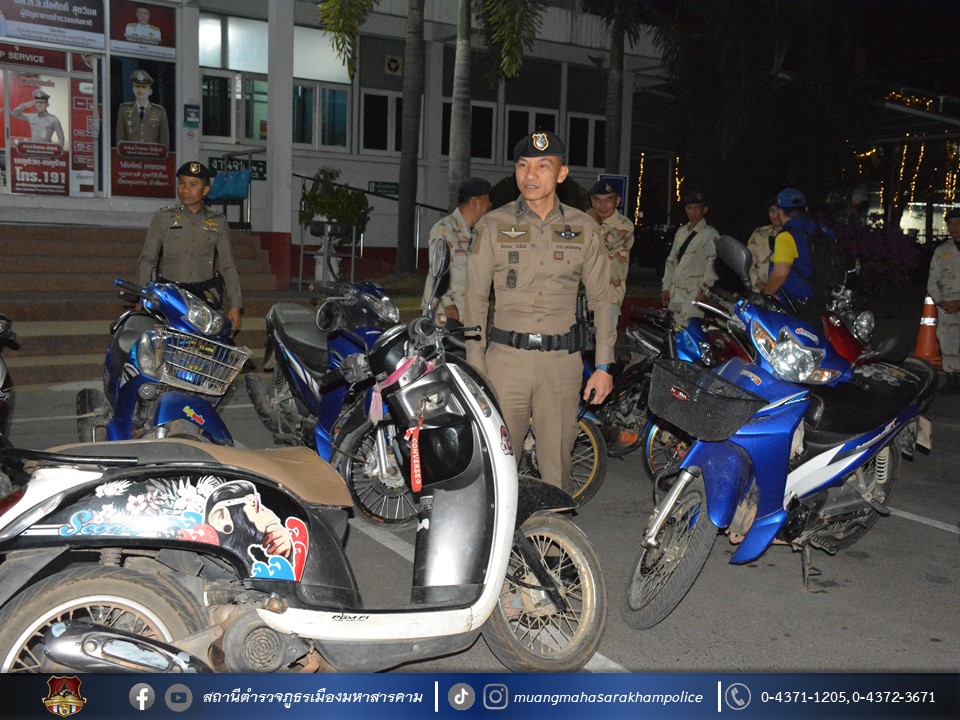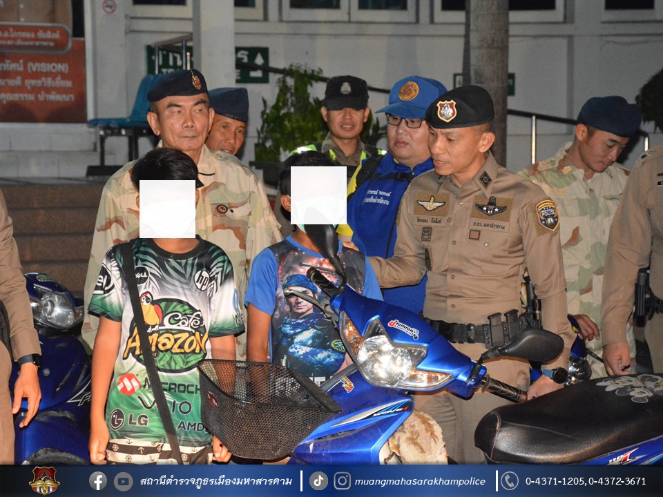 🔸พร้อมด้วยเจ้าหน้าที่ฝ่ายปกครอง อ.เมืองมหาสารคาม และเจ้าหน้าที่ตำรวจ สภ.เมืองมหาสารคาม สนธิกำลังในการลงพื้นที่ตรวจจุดเสี่ยงต่างๆ ในพื้นที่เขตอำเภอเมืองมหาสารคาม ตั้งแต่เวลา 22.00 น. ถึง 24.00 น. ซึ่งผลการปฏิบัติได้จัดทำประวัติเด็กและเยาวชน จำนวน 10 คน ตรวจยึดรถจักรยายนต์ จำนวน 7 คัน ซึ่งทางเจ้าหน้าที่ได้ประสานให้ผู้ปกครองมารับตัวและได้ให้รับทราบตามมาตรการก่อนจะให้มีการลงบันทึกรับทราบการชี้แจงตามนโยบาย