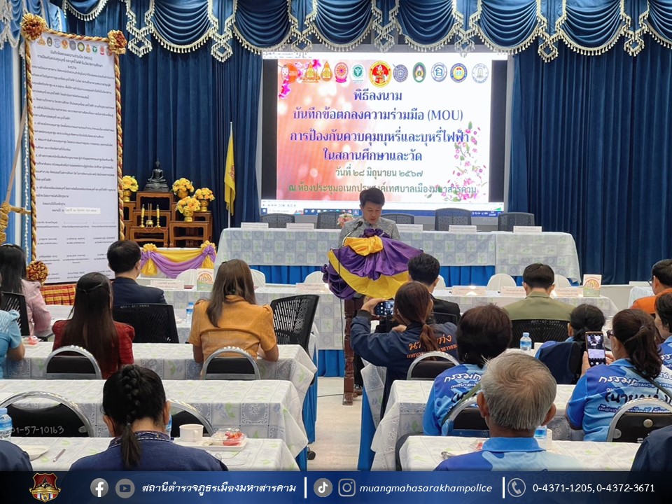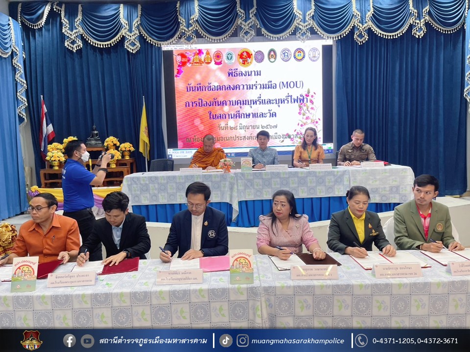 🔸ร่วมพิธีลงนาม บันทึกข้อตกลงความร่วมมือ (MOU) การป้องกันควบคุมบุหรี่และบุหรี่ไฟฟ้า ในสถานศึกษาและวัด ณ ห้องประชุมอเนกประสงค์เทศบาลเมืองมหาสารคาม อ.เมืองมหาสารคาม จ.มหาสารคาม