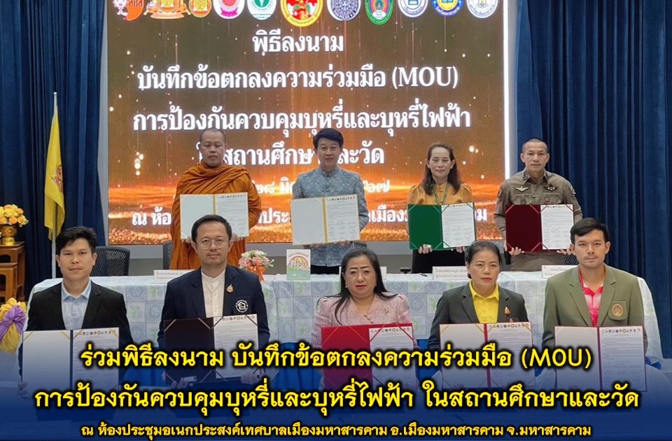 🔸ร่วมพิธีลงนาม บันทึกข้อตกลงความร่วมมือ (MOU) การป้องกันควบคุมบุหรี่และบุหรี่ไฟฟ้า ในสถานศึกษาและวัด ณ ห้องประชุมอเนกประสงค์เทศบาลเมืองมหาสารคาม อ.เมืองมหาสารคาม จ.มหาสารคาม