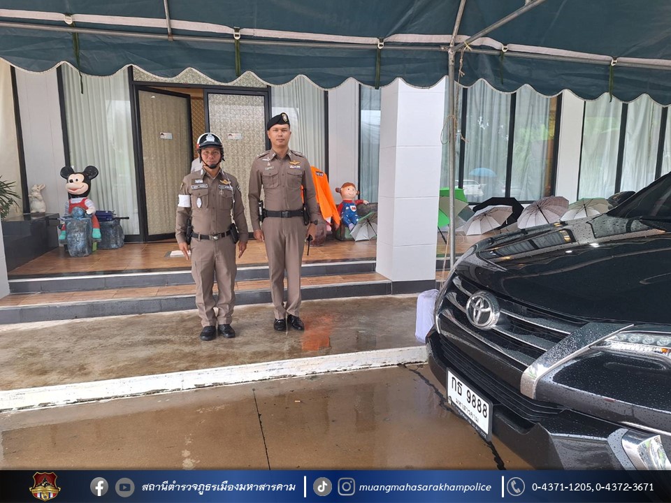 🔸โดยการนี้ พ.ต.อ.ไกรทอง ชัยสิงห์ ผกก.สภ.เมืองมหาสารคาม ได้จัดกำลังเจ้าหน้าที่ตำรวจสายตรวจรถยนต์ รถจักรยายนต์ เจ้าหน้าที่ตำรวจจราจร สภ.เมืองมหาสารคาม อำนวยความสะดวกด้านการจราจรและรักษาความปลอดภัยรอบบริเวณฯ