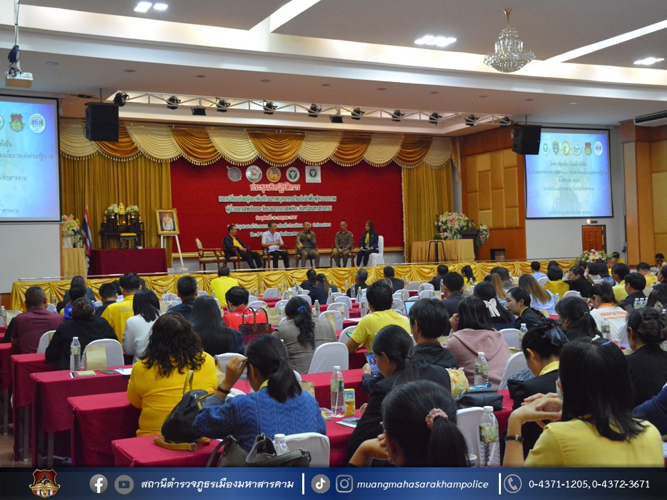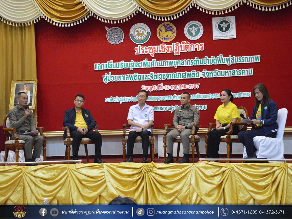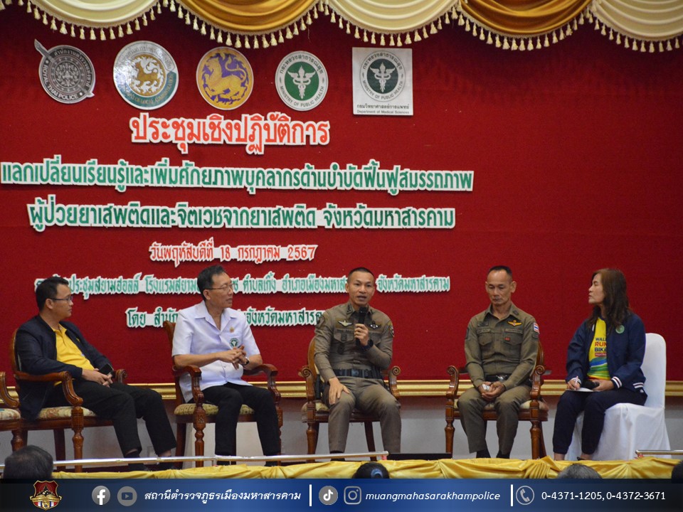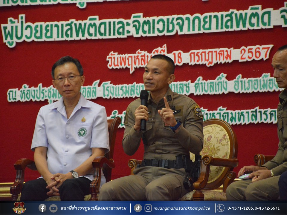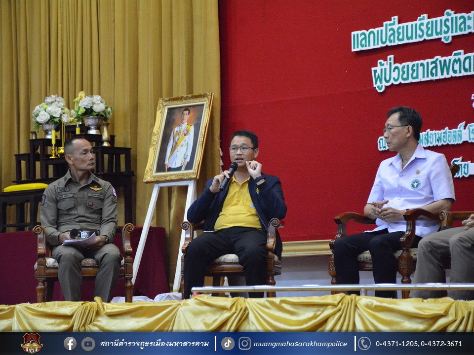 🔸จากนั้น เวลา 10.00 – 12.00 น. พล.ต.ต.พรชัย ชลอเดช ผบก.ภ.จว.มหาสารคาม มอบหมายให้ พ.ต.อ.ไกรทอง ชัยสิงห์ ผกก.สภ.เมืองมหาสารคาม เป็นตัวแทน ภ.จว.มหาสารคาม ร่วมเวทีเสวนาในหัวข้อ “นโยบายขับเคลื่อนป้องกัน ปราบปรามและการบำบัดรักษา/ฟื้นฟูผู้ติดยาเสพติด และนโยบายเร่งรัดบำบัดฟื้นฟูสมรรถภาพผู้ป่วยยาเสพติด 3 เดือน (1 มิถุนายน – 31 สิงหาคม 2567)”